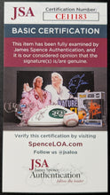 - Very good condition; autograph presents well with no fading, bleeding or smudging. Notable material loss on top right corner, glue residue on back due to being removed from scrapbook