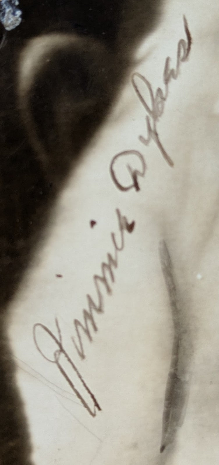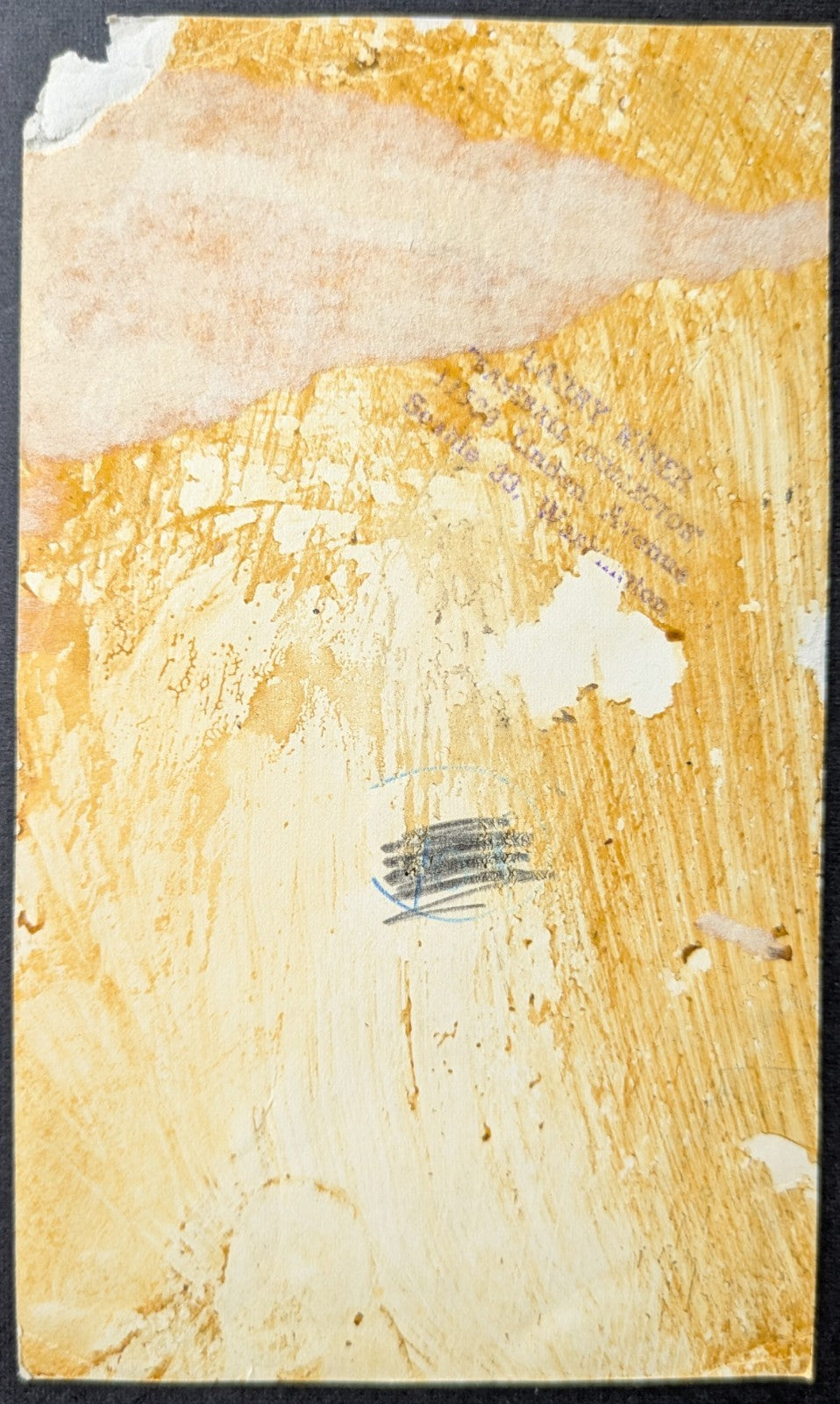 • Very good condition; autograph presents well with no fading, bleeding or smudging. Notable material loss on top right corner, glue residue on back due to being removed from scrapbook