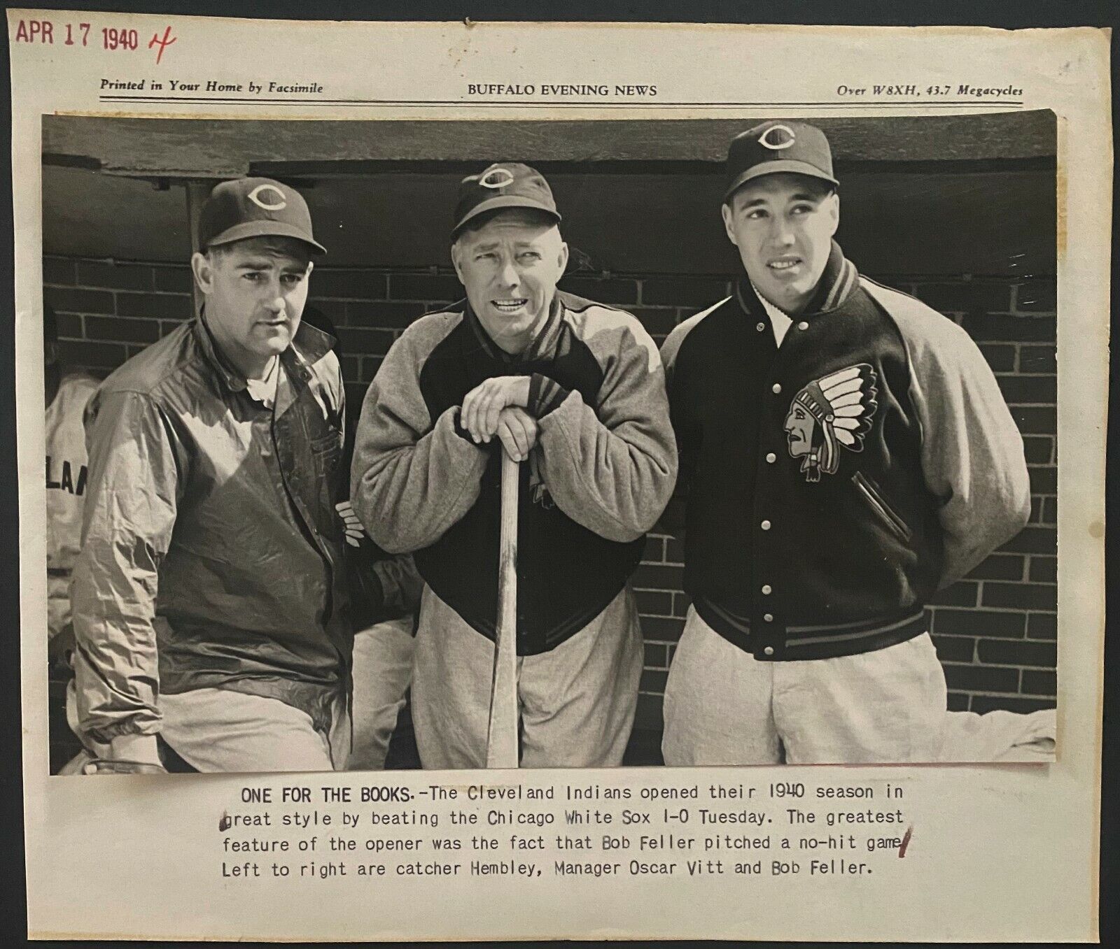 • Also in photo is his catcher Rollie Hemsley and manager Oscar Vitt