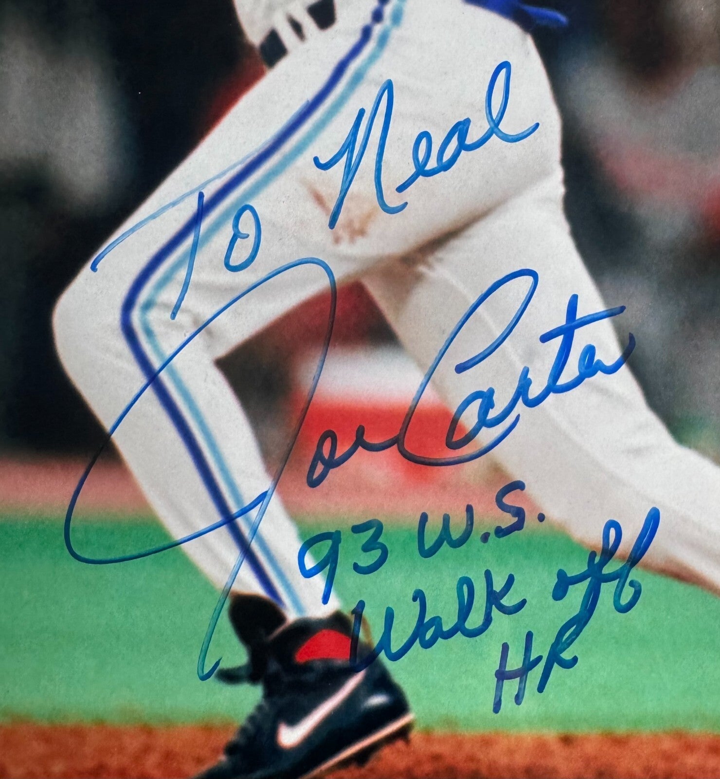 - Carter signed photo with personalized "To Neal" with "93 W.S> Walk Off HR" inscription