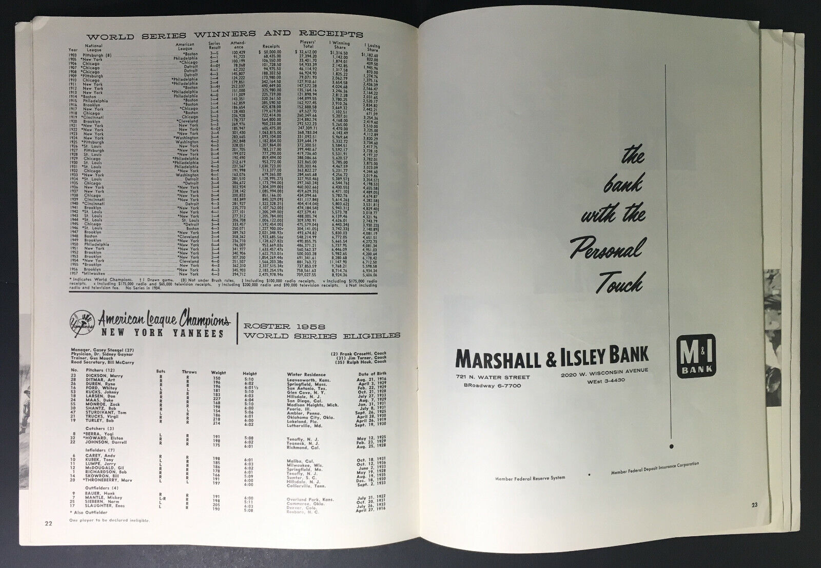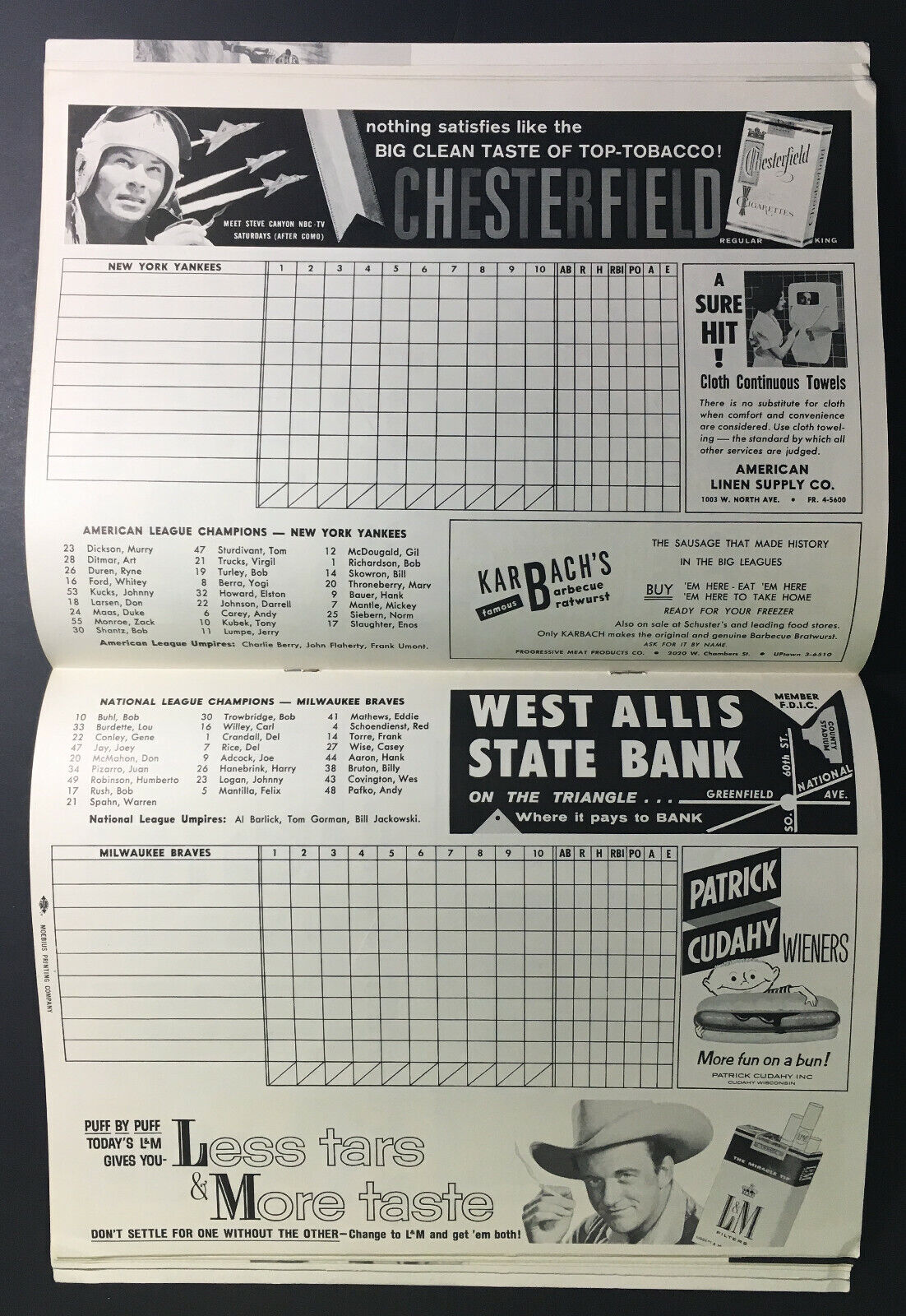 1958 World Series Baseball Program Milwaukee Braves vs New York Yankees MLB