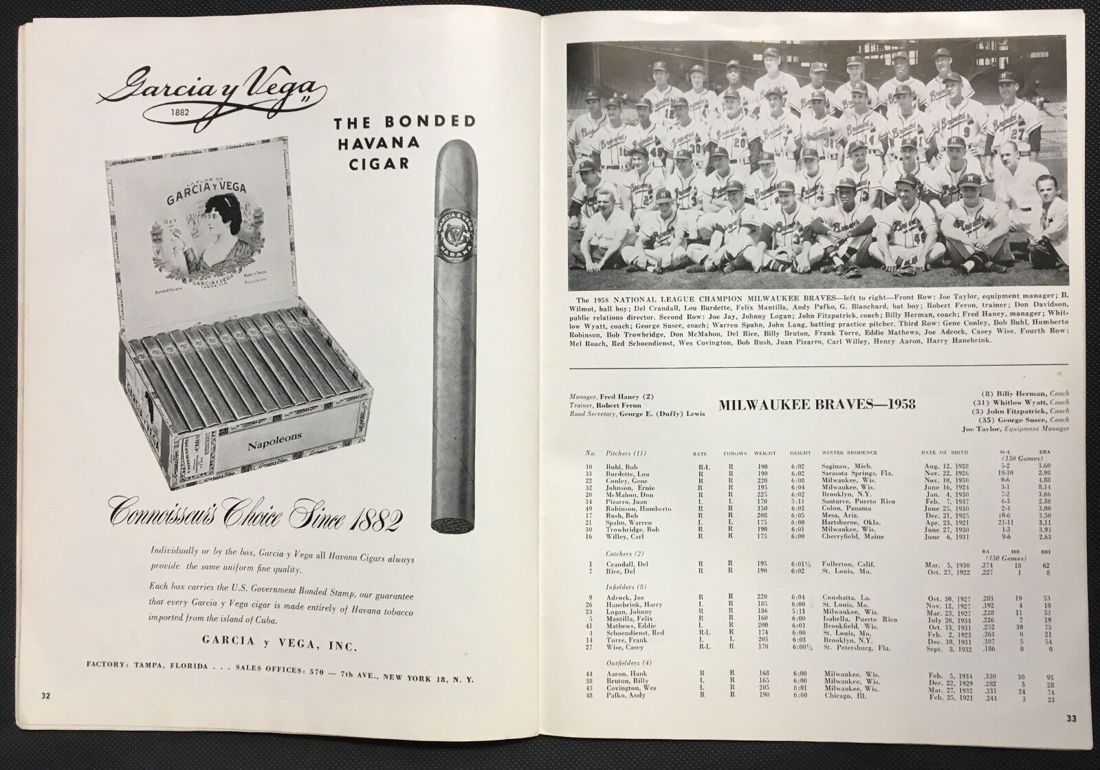 1958 World Series Baseball Program Yankees Stadium New York vs Milwaukee Braves
