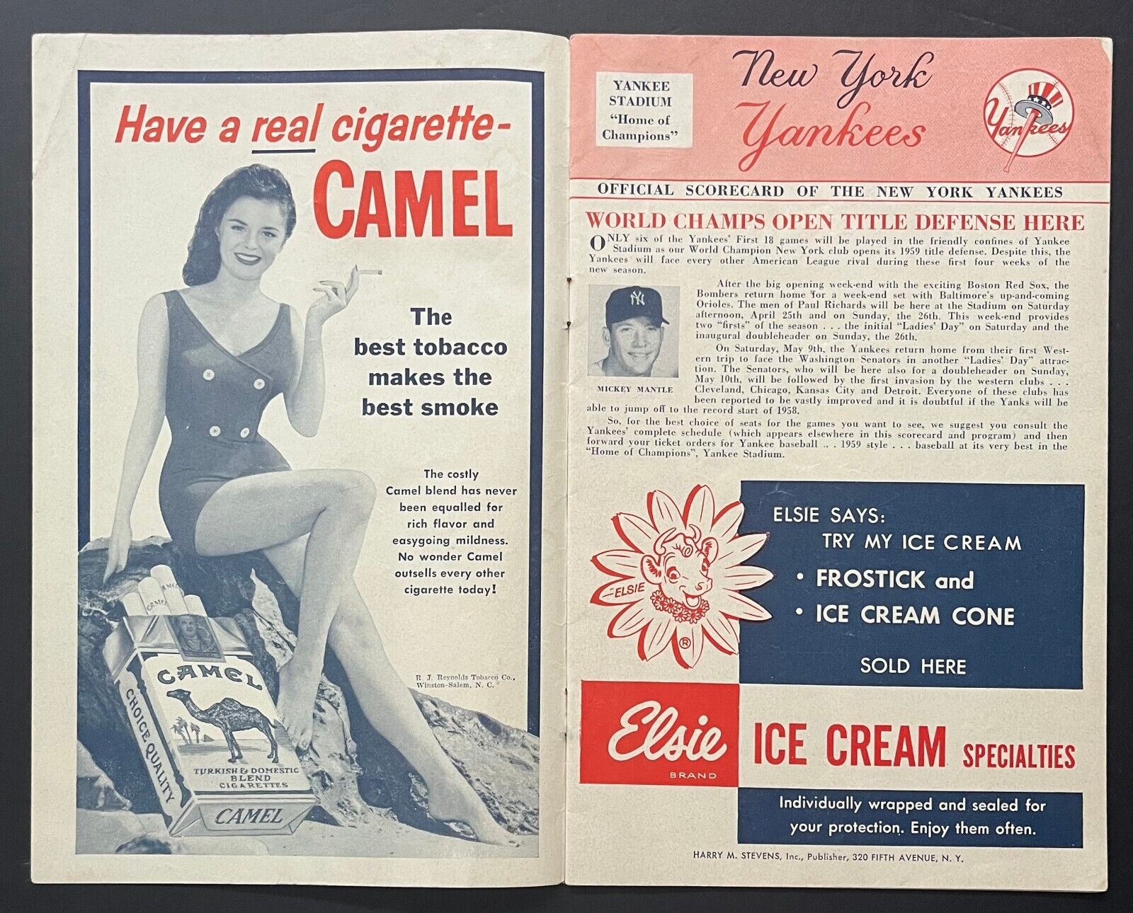1959 Yankee Stadium MLB Baseball Program Yankees vs Indians Mantle Home Run