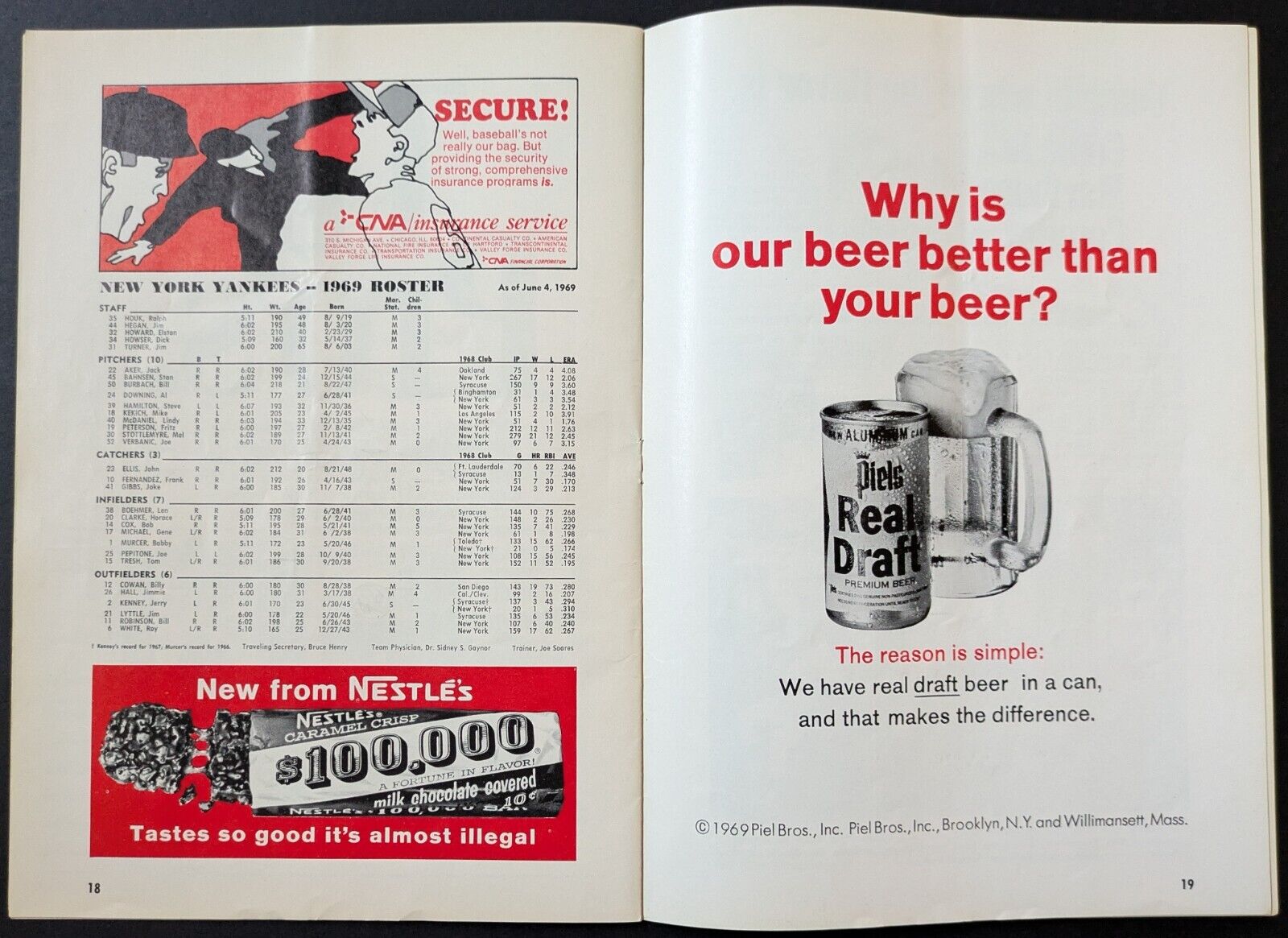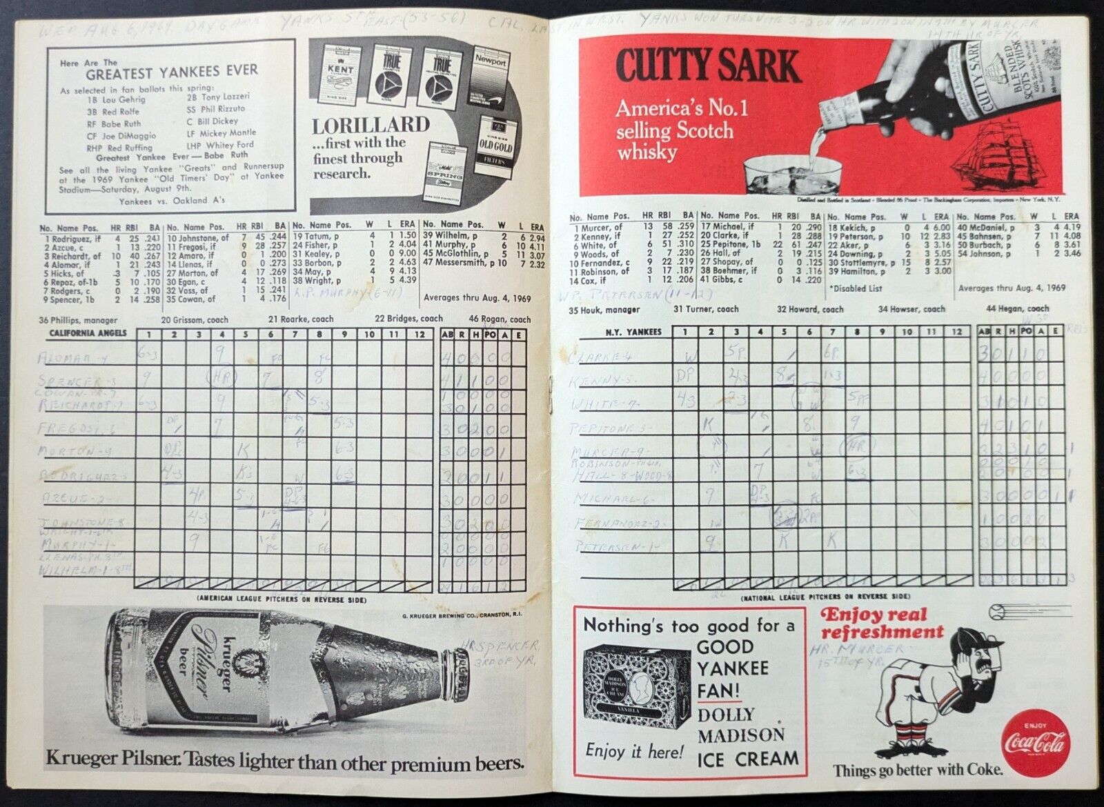 - August 6th 1969 Yankee Stadium program
