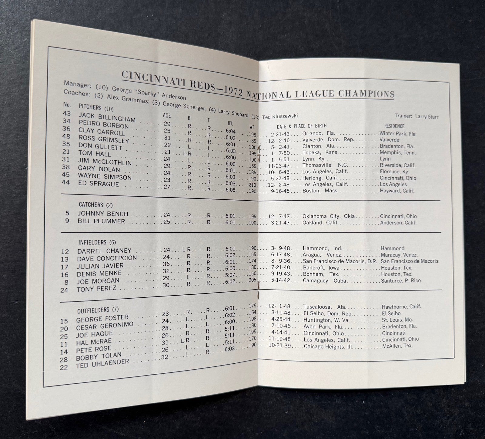 - 1972 Cincinnati Reds National League Champions World Series Media Guide