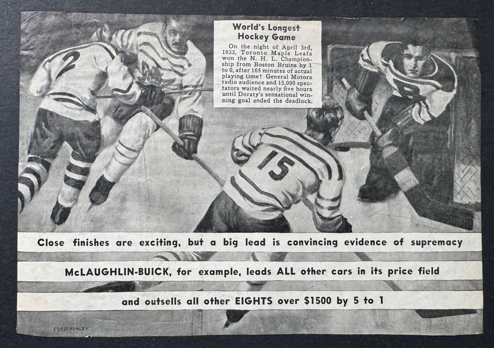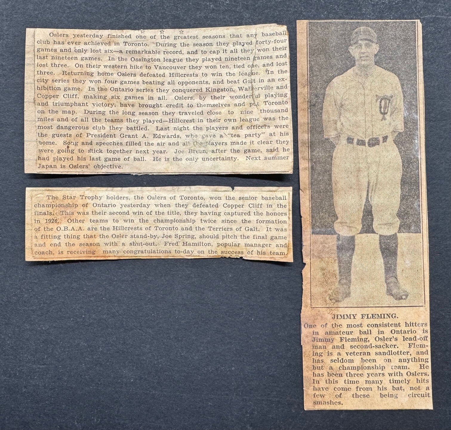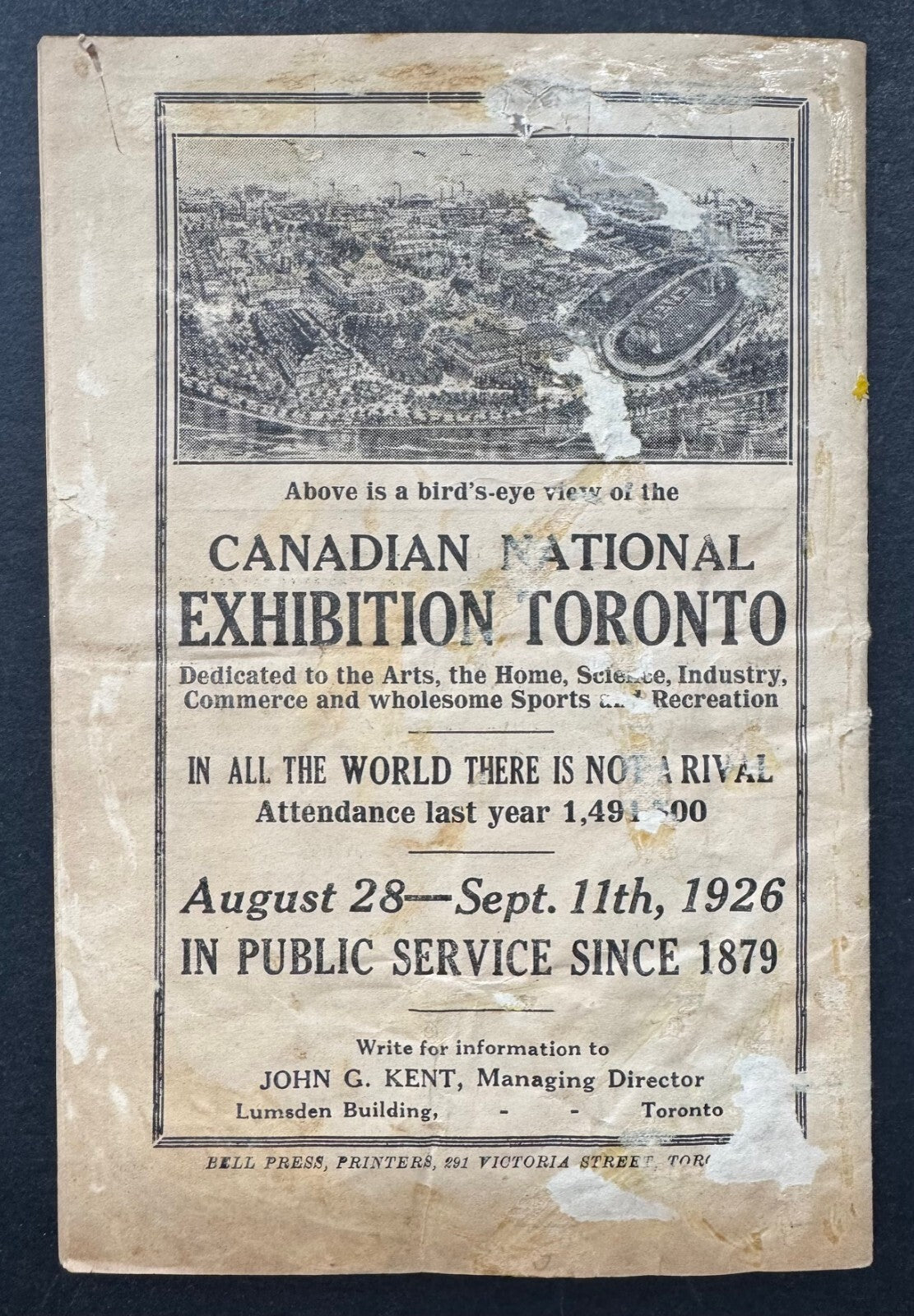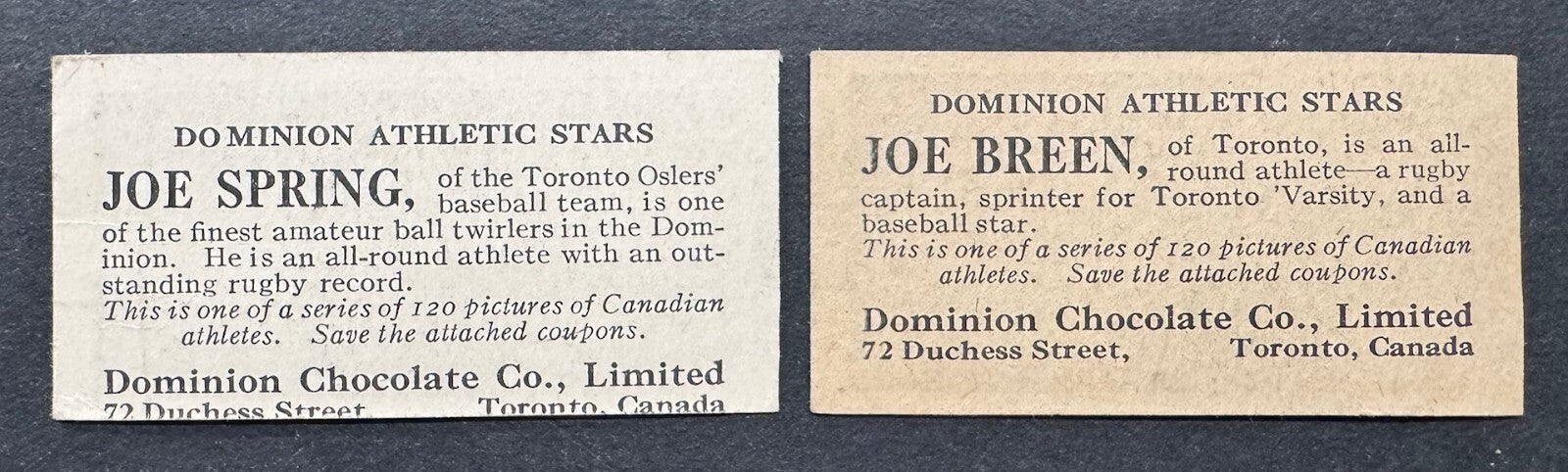 - Package includes Oct. 2, 1926 program with lineup inside. Toronto wins 4-3 and advance to finals where they defeat Copper Cliff on Oct. 10. Ticket from final included for game at Ossington Park Lineup for quarterfinal game also included (glued beneath semi final lineup). Also included 3 news clipping recapping playoffs and bio of player Jimmy Fleming. Two Dominion chocolate player cards of Joe Spring and Joe Breen