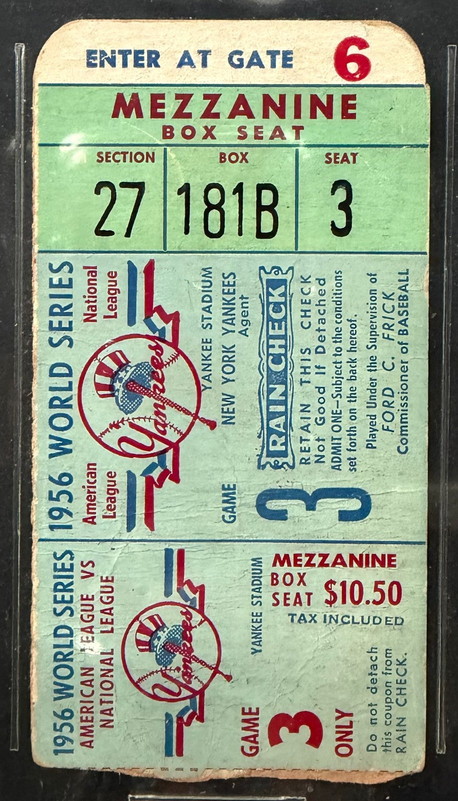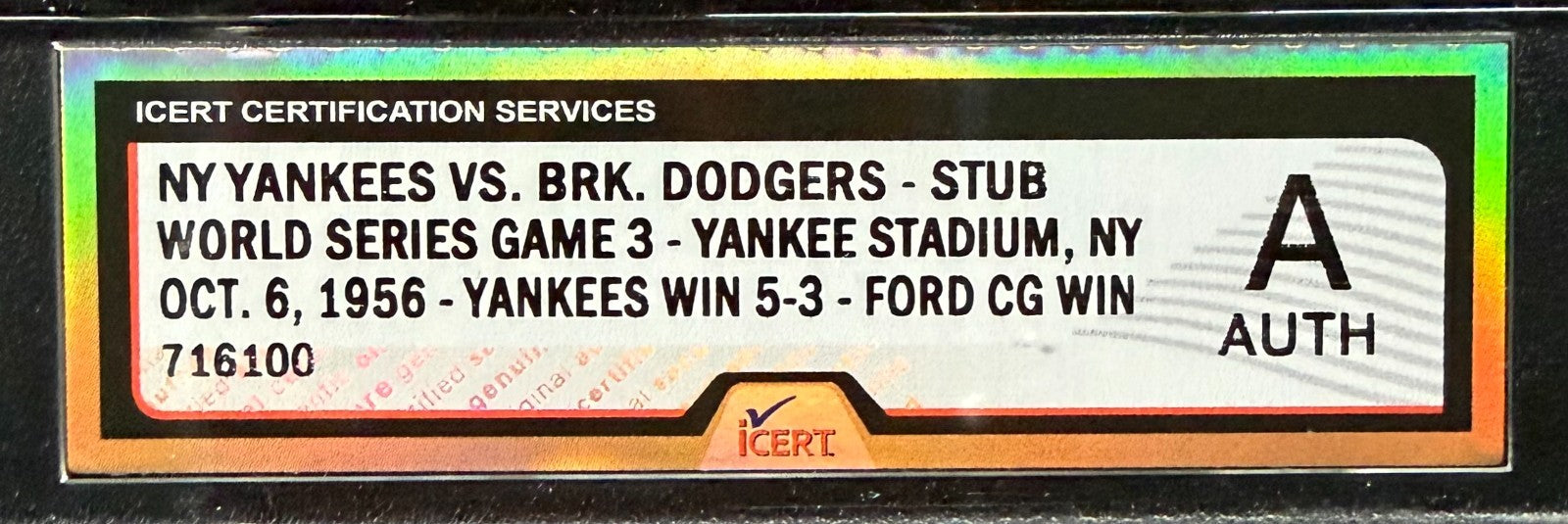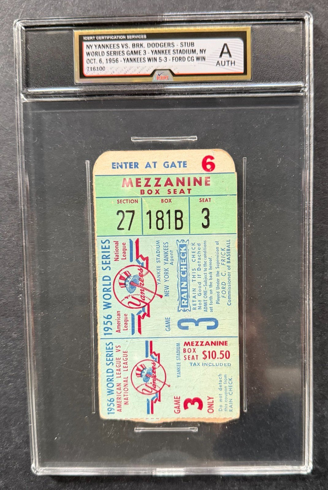 1956 World Series Game 3 Ticket Stub New York Yankees Brooklyn Dodgers iCert A