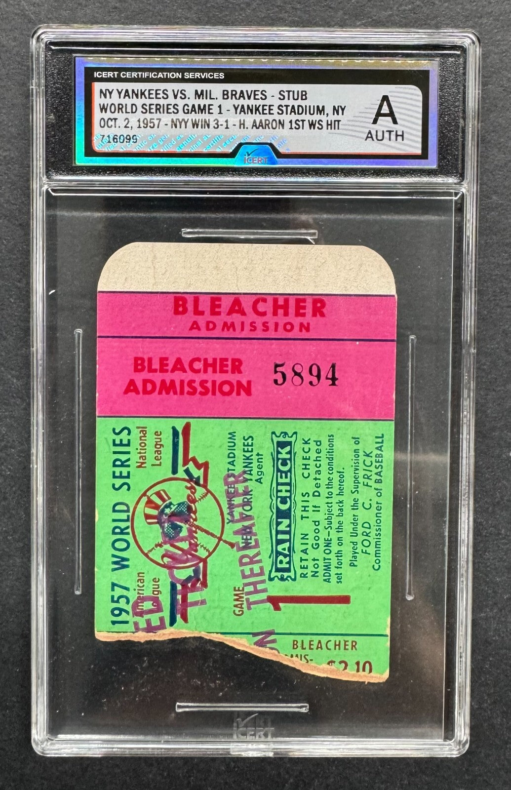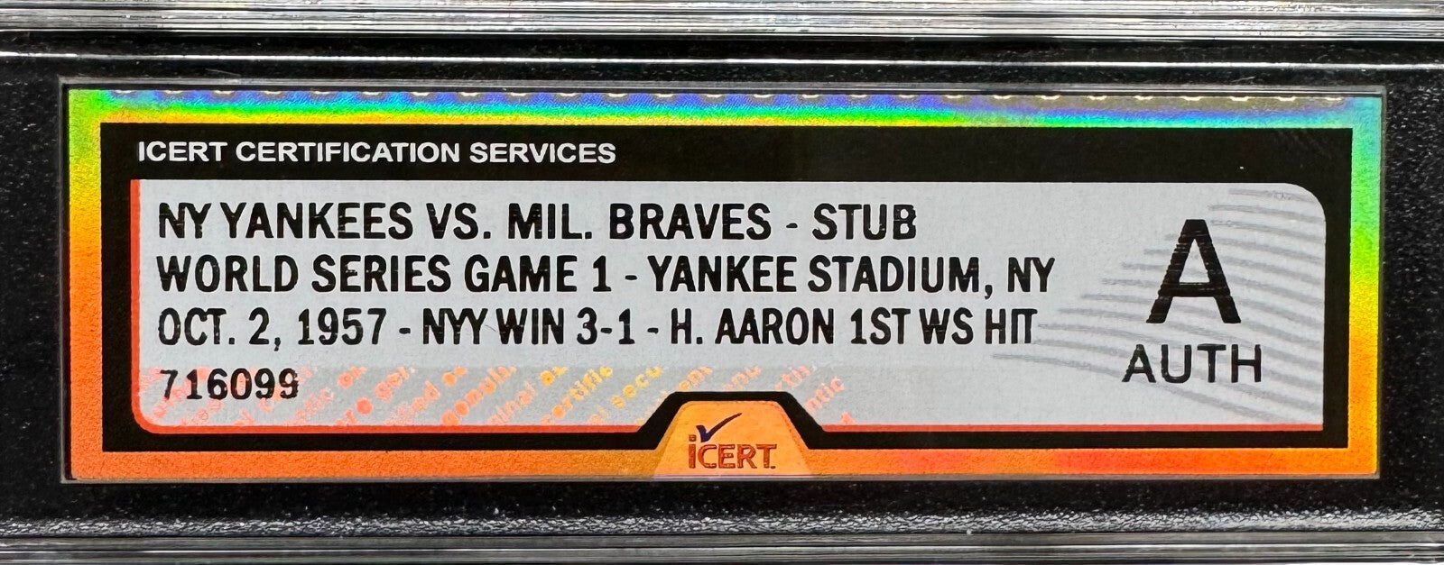 1957 World Series Game 1 Ticket Stub iCert Graded Yankee Stadium New York Braves