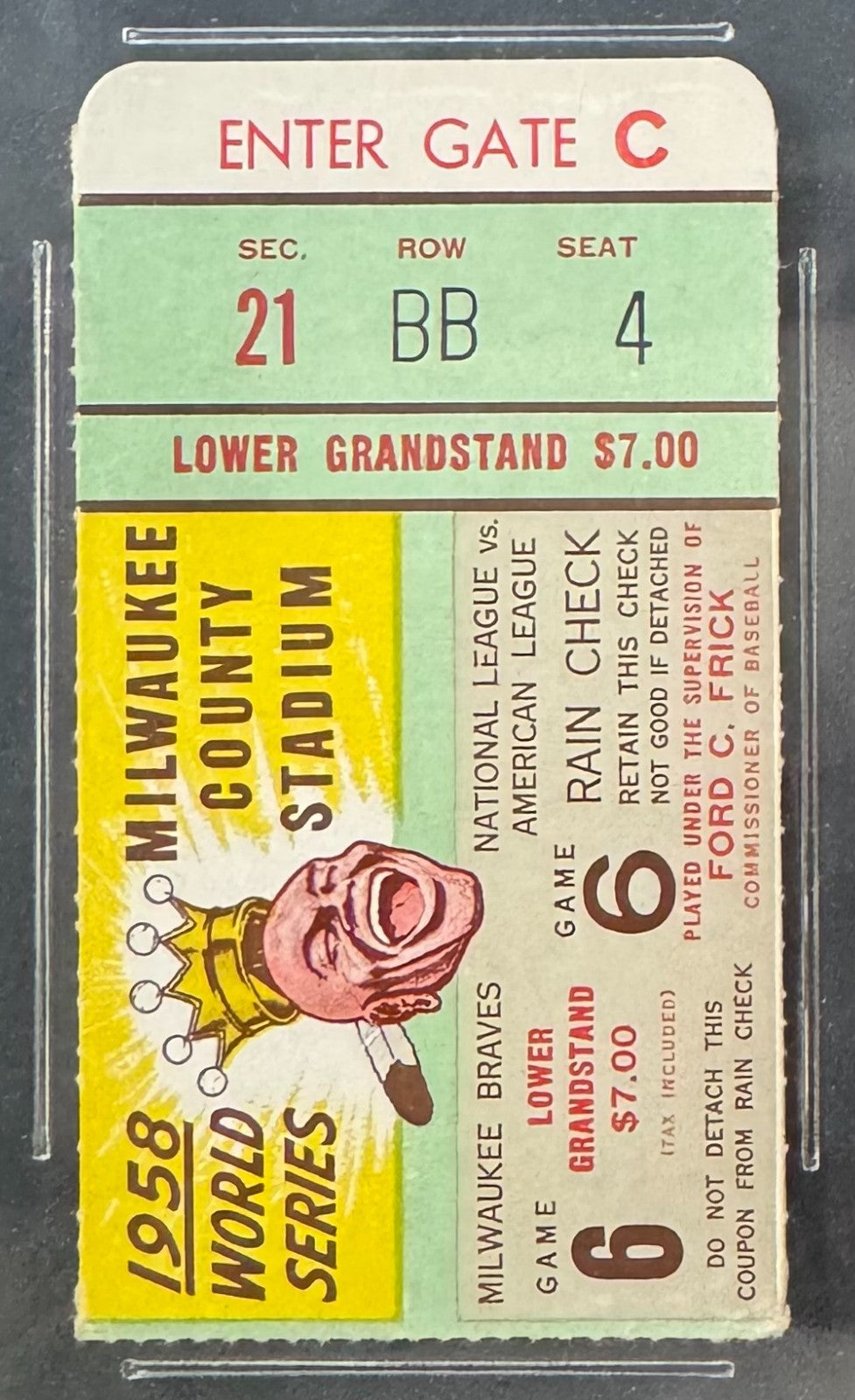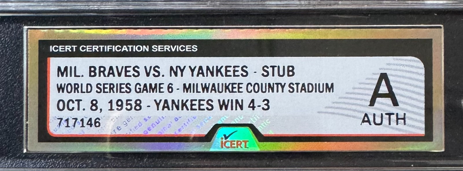 1958 World Series Game 6 Stub New York Yankees Milwaukee Braves iCert A Auth MLB
