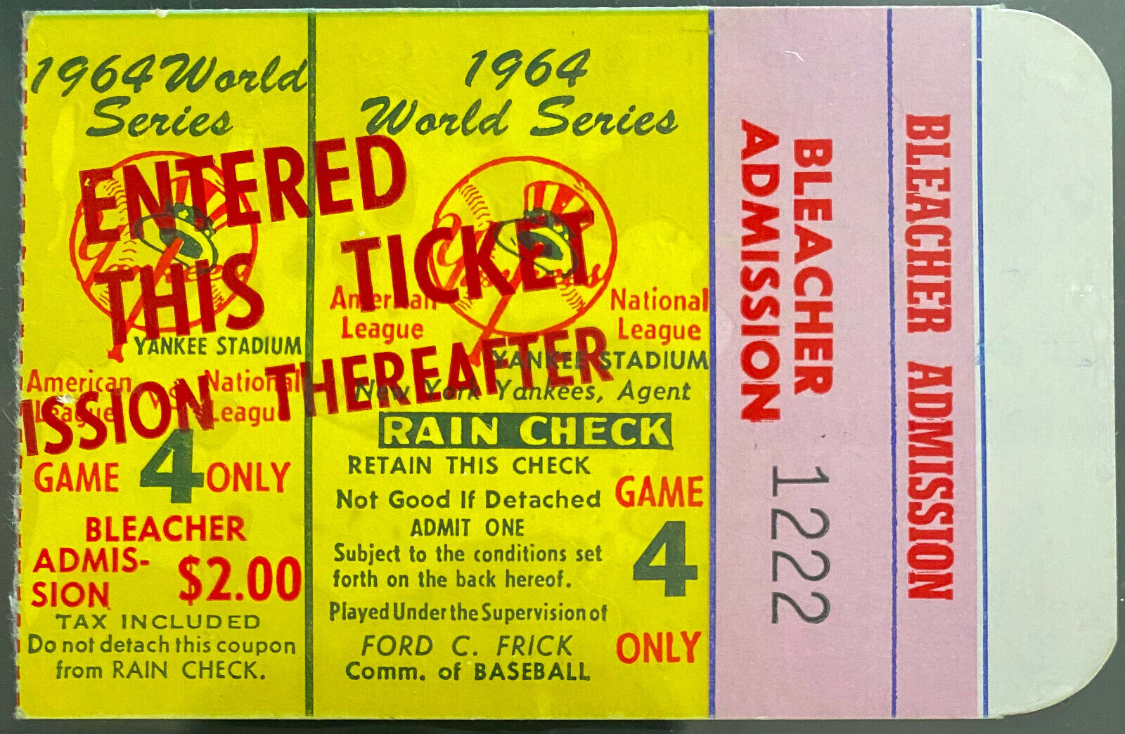 1964 World Series Game 4 Ticket Yankee Stadium New York vs Cardinals Graded EX5