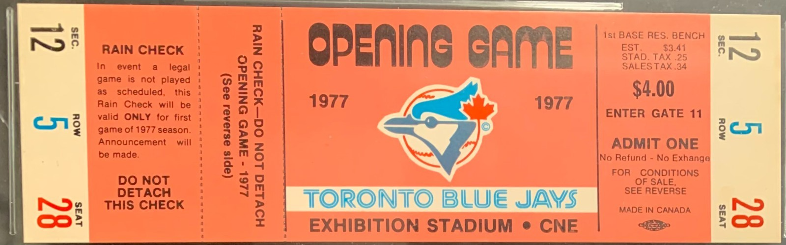 - 1977 Toronto Blue Jays Franchise First Game Full Ticket iCert Graded