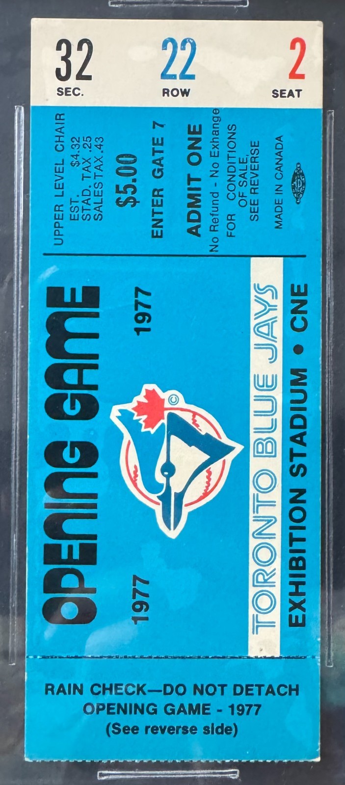 - 1977 Toronto Blue Jays first franchise game full ticket (dark blue variation)