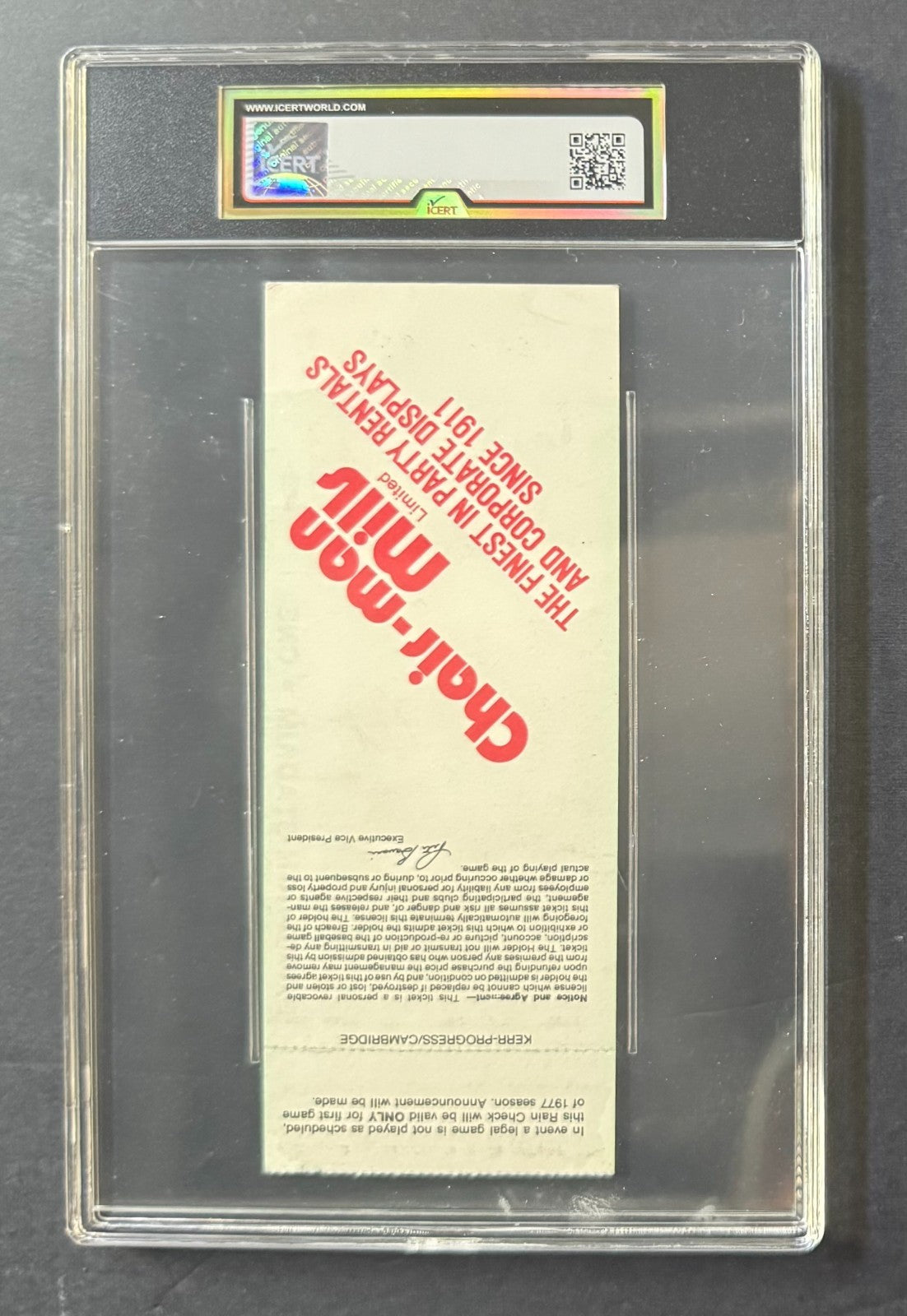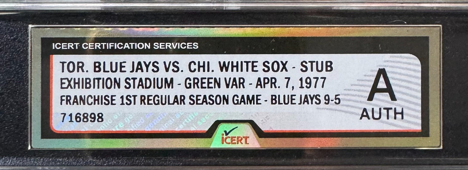 - Slabbed and authenticated by iCert. Ticket itself shows some residual wear along the perforated edge and some very faint creasing