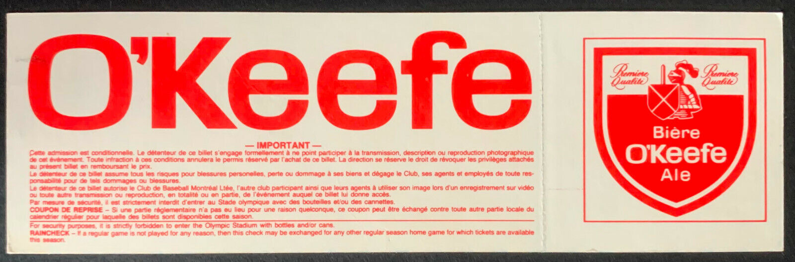 - Full Montreal Expos MLB baseball ticket from Olympic Stadium