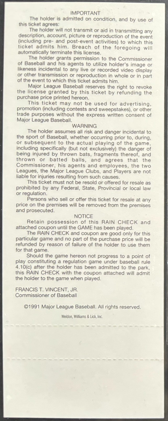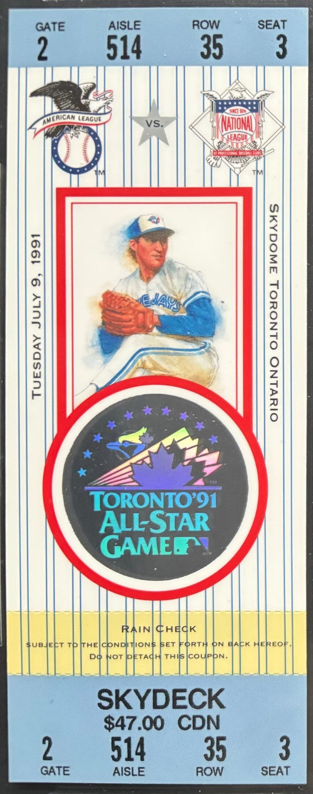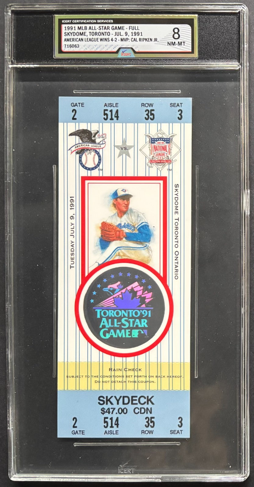 1991 MLB All-Star Game Full Ticket iCert 8 NM-MT Skydome Toronto Cal Ripken Jr.