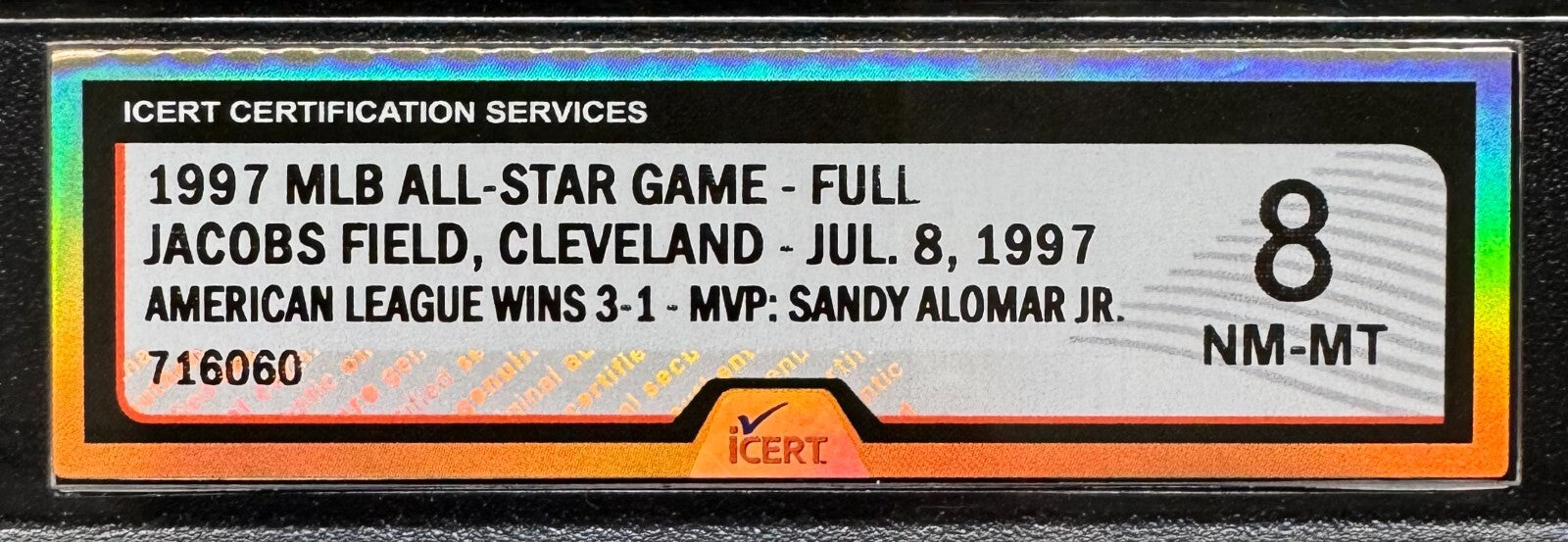 • 1997 MLB All-Star Game Full Ticket iCert 8 NM-MT