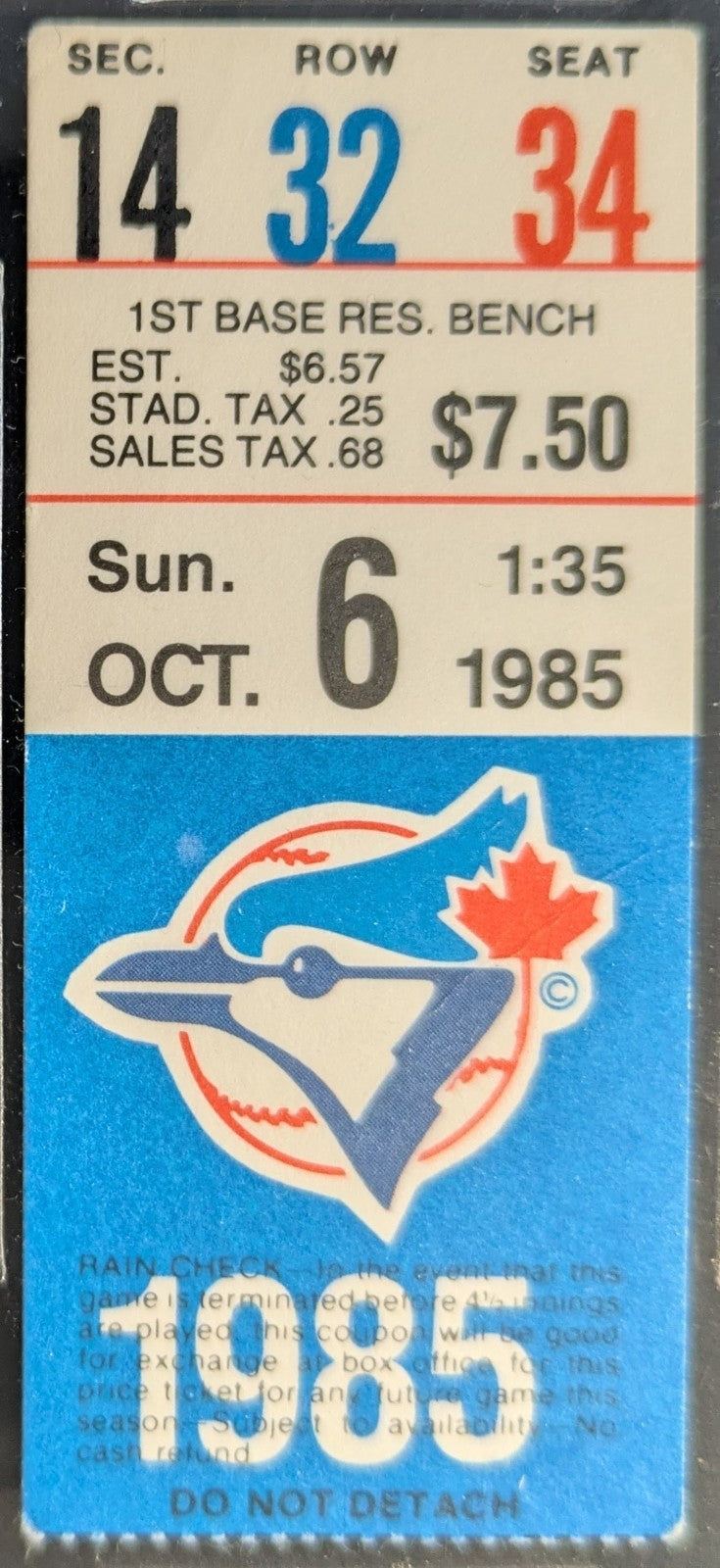 - Oct. 6th, 1985 Toronto Blue Jays vs New York Yankees MLB ticket stub