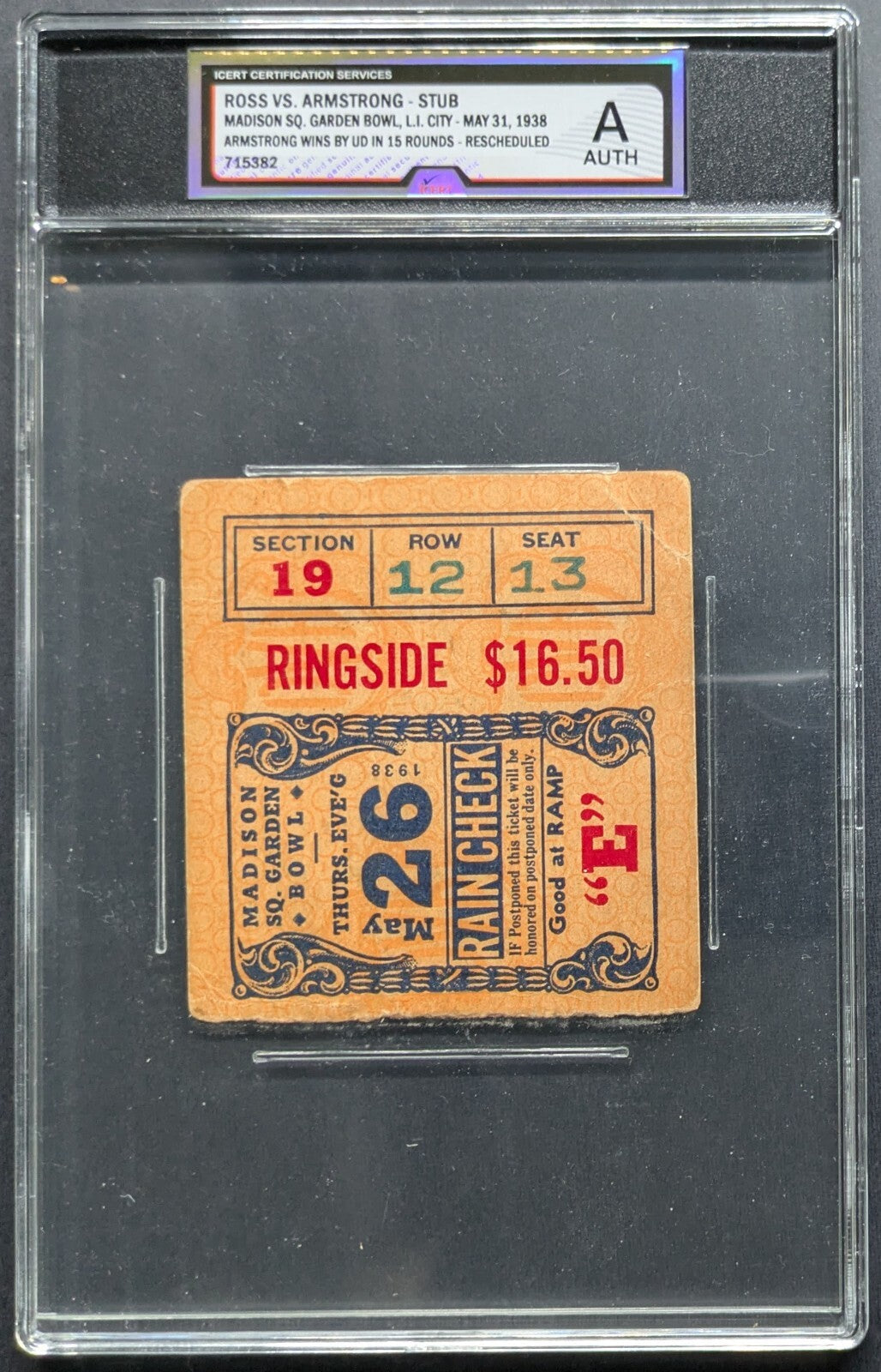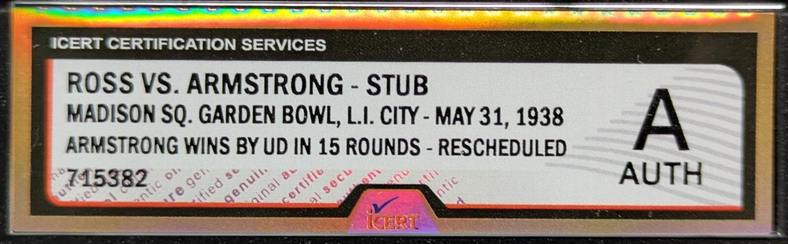 - Ross Vs Armstrong Boxing Match Ticket Stub iCert Graded