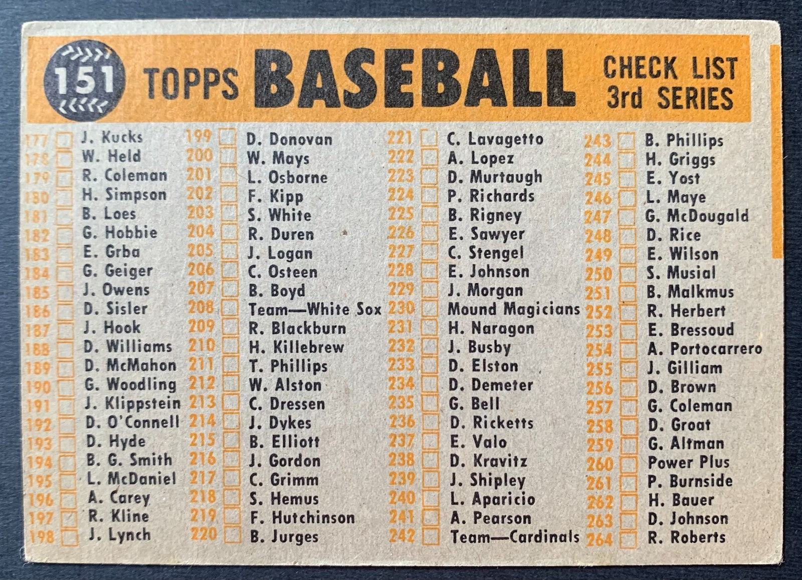 • 1960 Topps #151 San Francisco Giants Team Baseball Card MLB