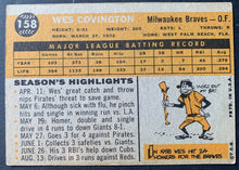 1960 Topps #158 Wes Covington Milwaukee Braves Baseball Card MLB Outfielder