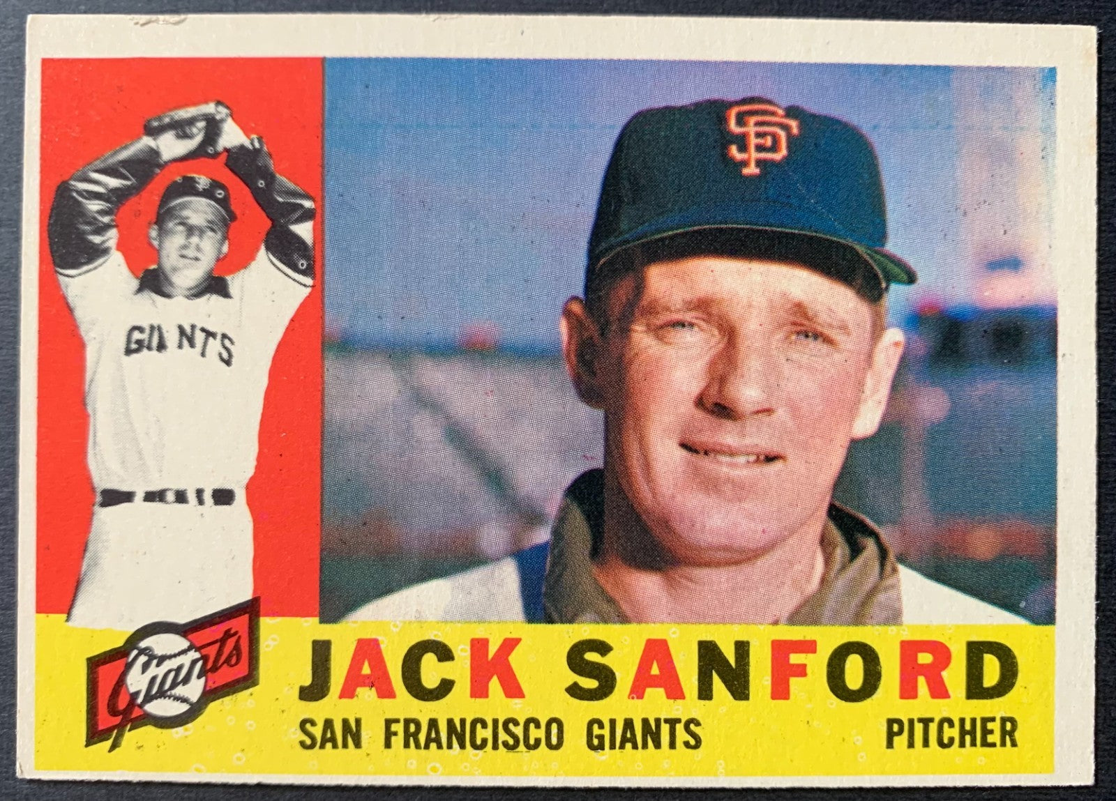 • 1960 Topps #165 Jack Sanford San Francisco Giants Baseball Card MLB Pitcher