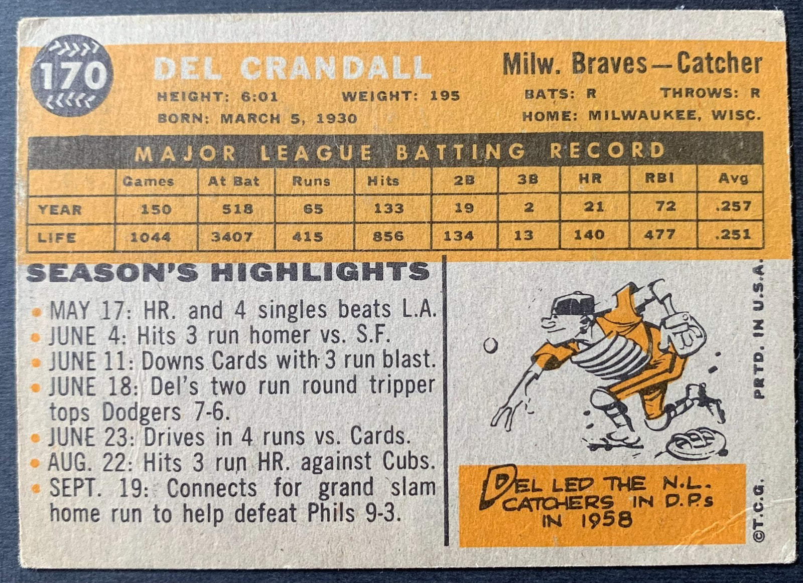 - 1960 Topps #170 Del Crandall Milwaukee Braves Baseball Card MLB Catcher