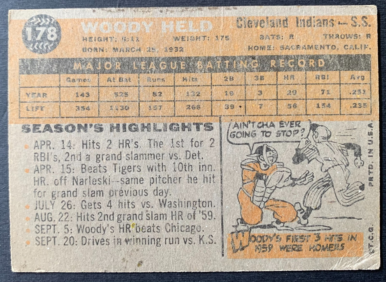 - 1960 Topps #178 Woody Held Cleveland Indians Baseball Card MLB Infielder