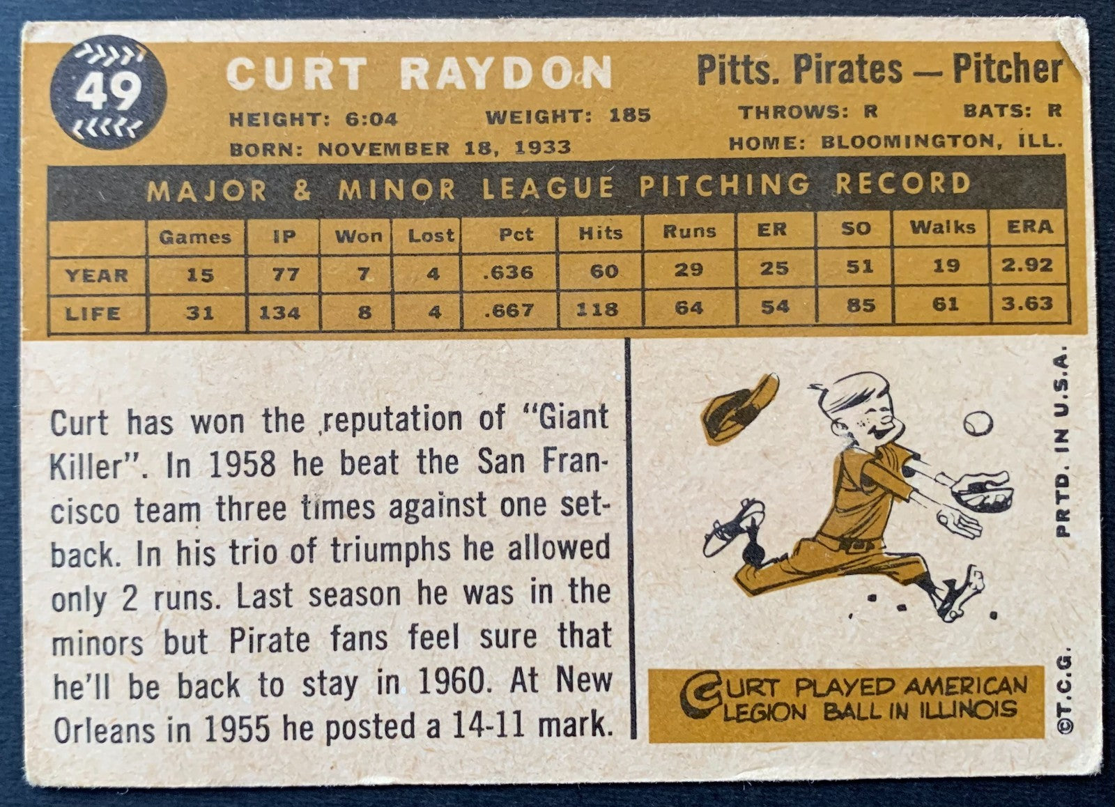 - 1960 Topps #49 Curt Raydon Pittsburgh Pirates Baseball Card MLB Pitcher