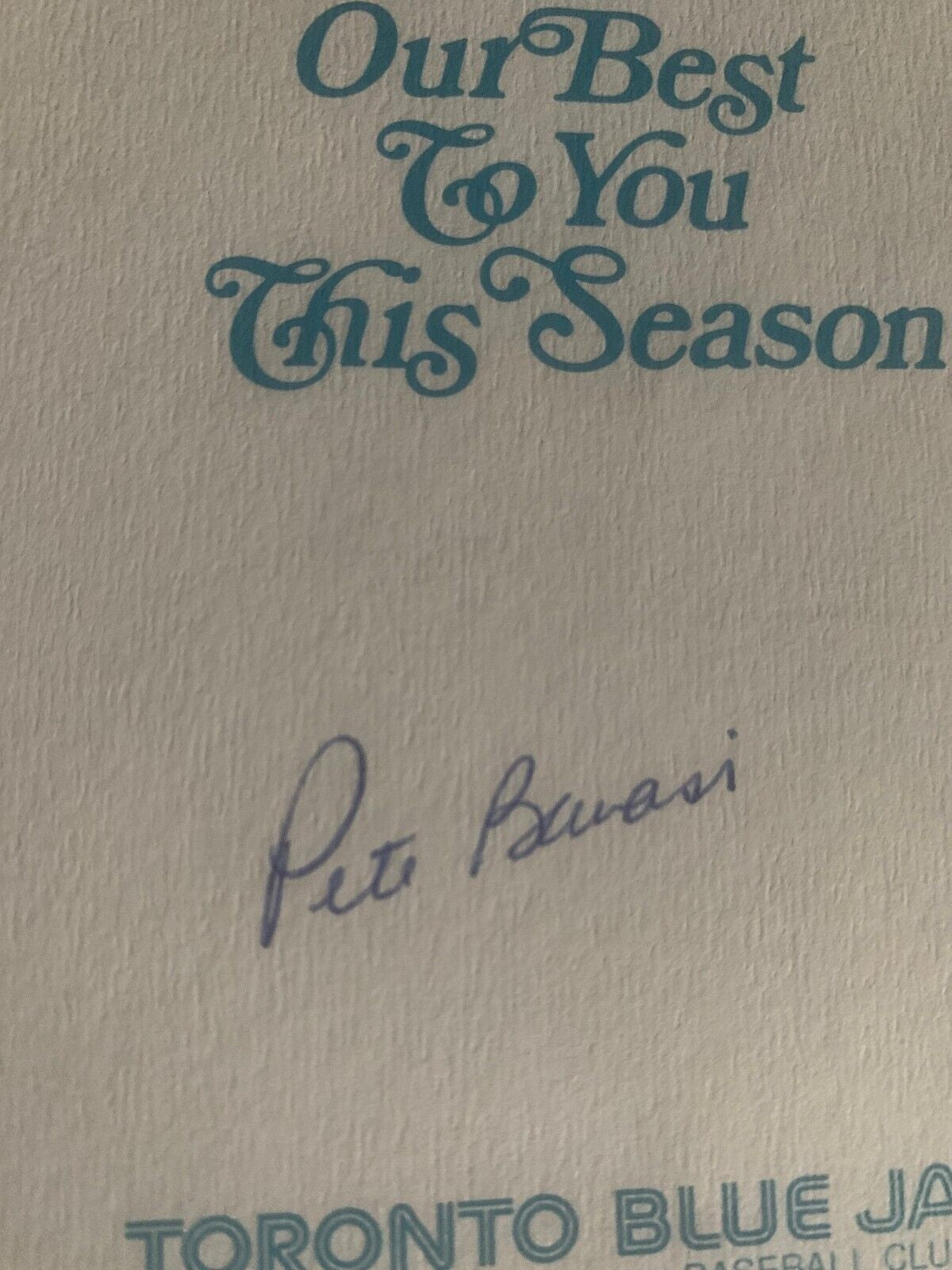 • 1977 Inaugural Season Toronto Blue Jays Christmas Card autographed by General Manager Peter Bavasi