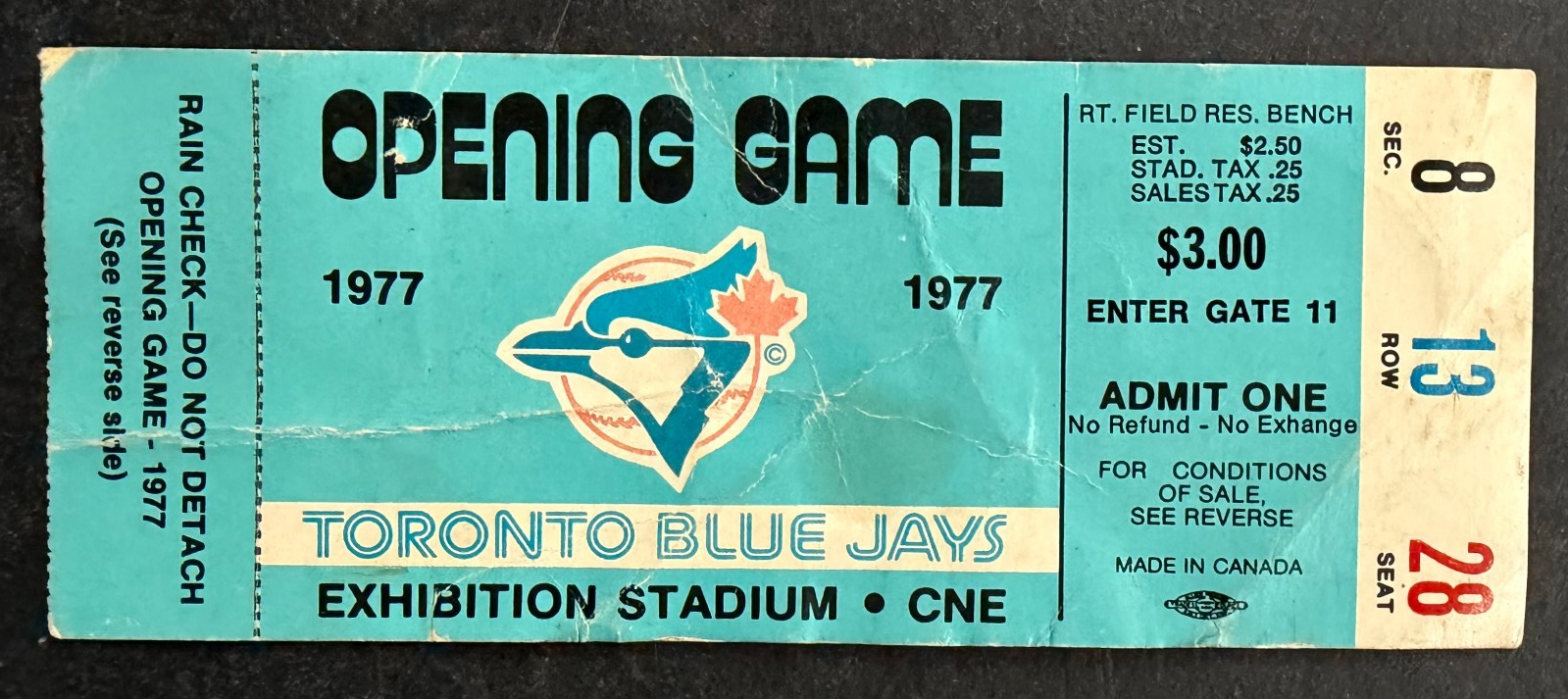 - 1977 Toronto Blue Jays first franchise game ticket stub (blue variation)