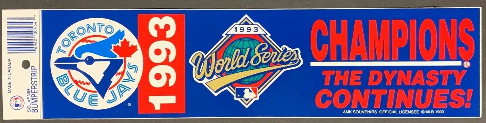 - Vintage 1993 Toronto Blue Jays World Series Champions bumper sticker