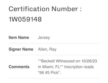 - Ray Allen signed autographed Milwaukee Bucks Mitchell & Ness Swingman jersey , inscribed with “96 #5 pick”