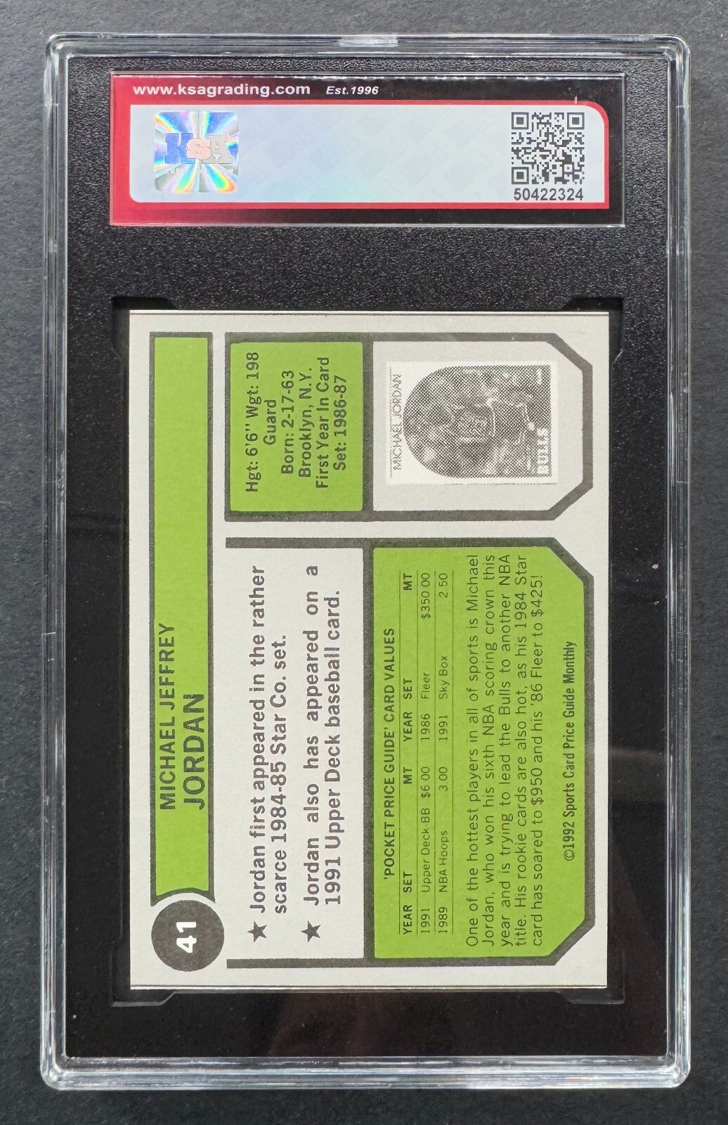 - 1992 Sports Card Price Guide #41 Michael Jordan Hand Cut KSA 5 Graded Card