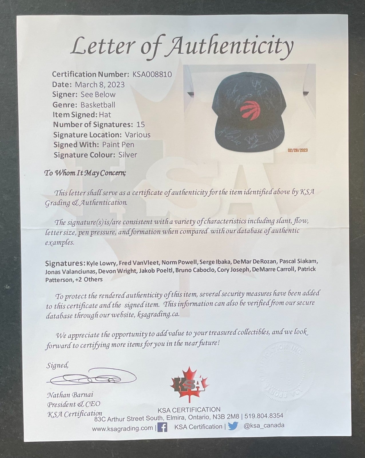 2016-17 Toronto Raptors Team Signed x15 Autographed Snapback Hat KSA LOA NBA