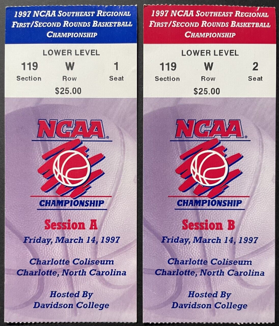 - 1996 NCAA Basketball tournament Championship game ticket lot x2 for 1st / 2nd round at Charlotte Coliseum