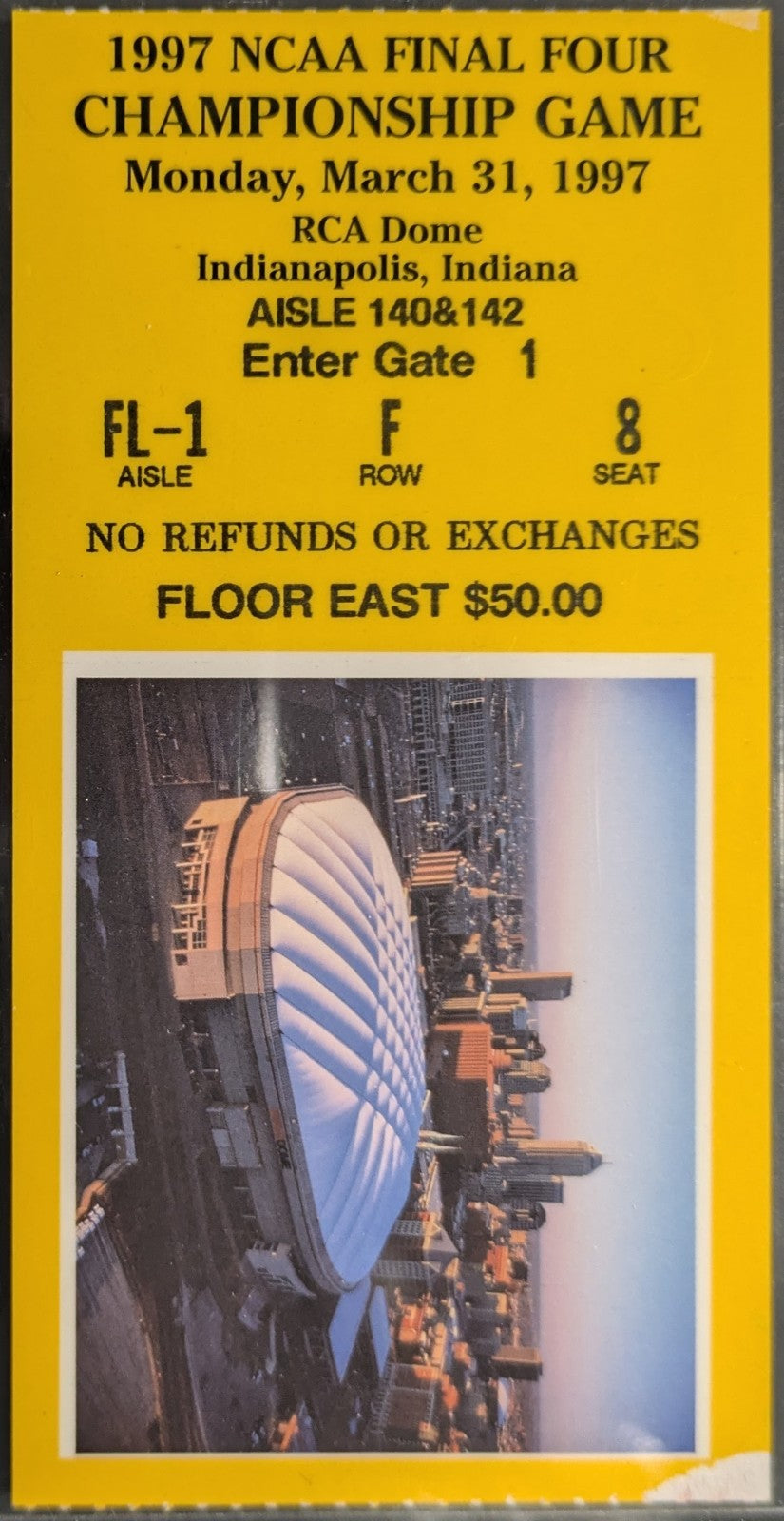 - March 31st, 1997 NCAA March Madness Final Four Championship Game Ticket Stub