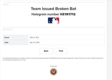 - Authenticated by MLB with holo sticker on the barrel (Cert# HZ191712) as a "Team Issued Broken Bat" but shows clear use