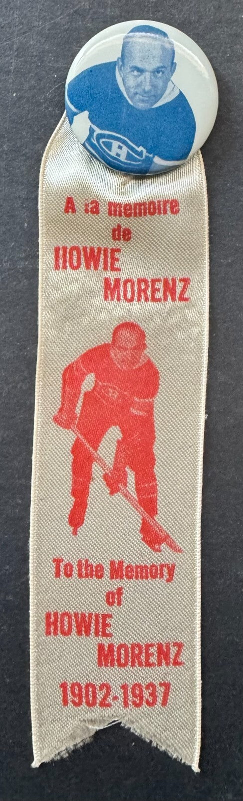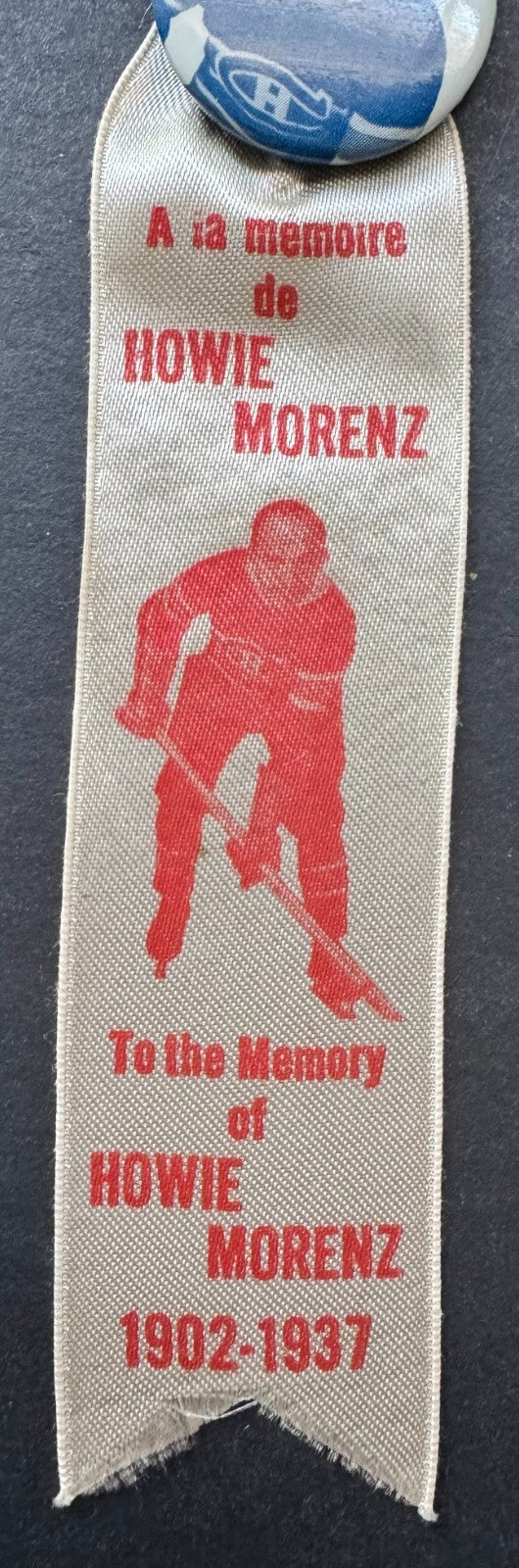- Howie Morenz memorial game played on Nov. 2, 1937. Pin and ribbon sold at the game to honour Morenz's sudden passing on March 8, 1937 after suffering an injury in a January 29th, game vs Chicago Blackhawks. Proceeds from the night were presented to the Morenz family. The game played the night before the opening of the 1937/39 NHL season schedule featured an all star team made of Canadiens and Maroons players vs an all star team made up of players from other teams in the NHL.