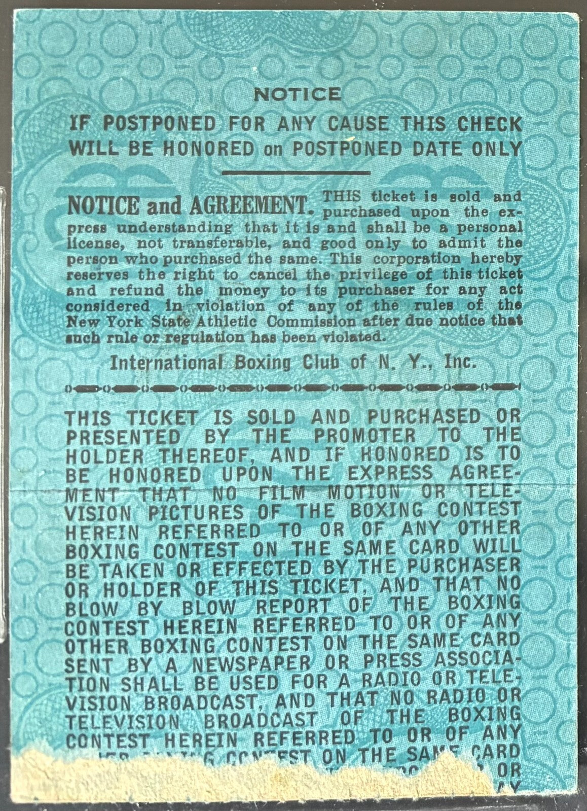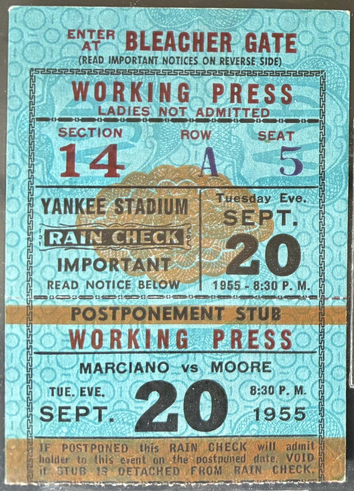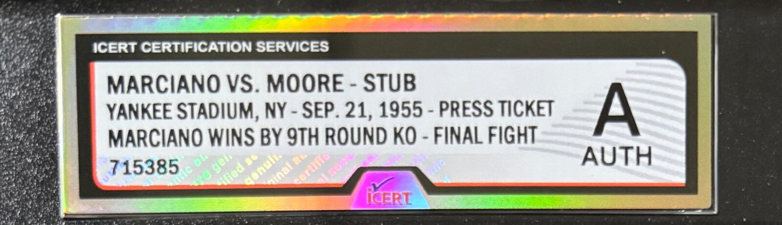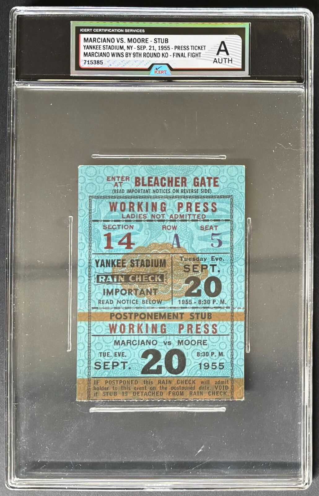 - 1955 Boxer Rocky Marciano Final Fight Ticket Stub iCert A Auth Yankee Stadium