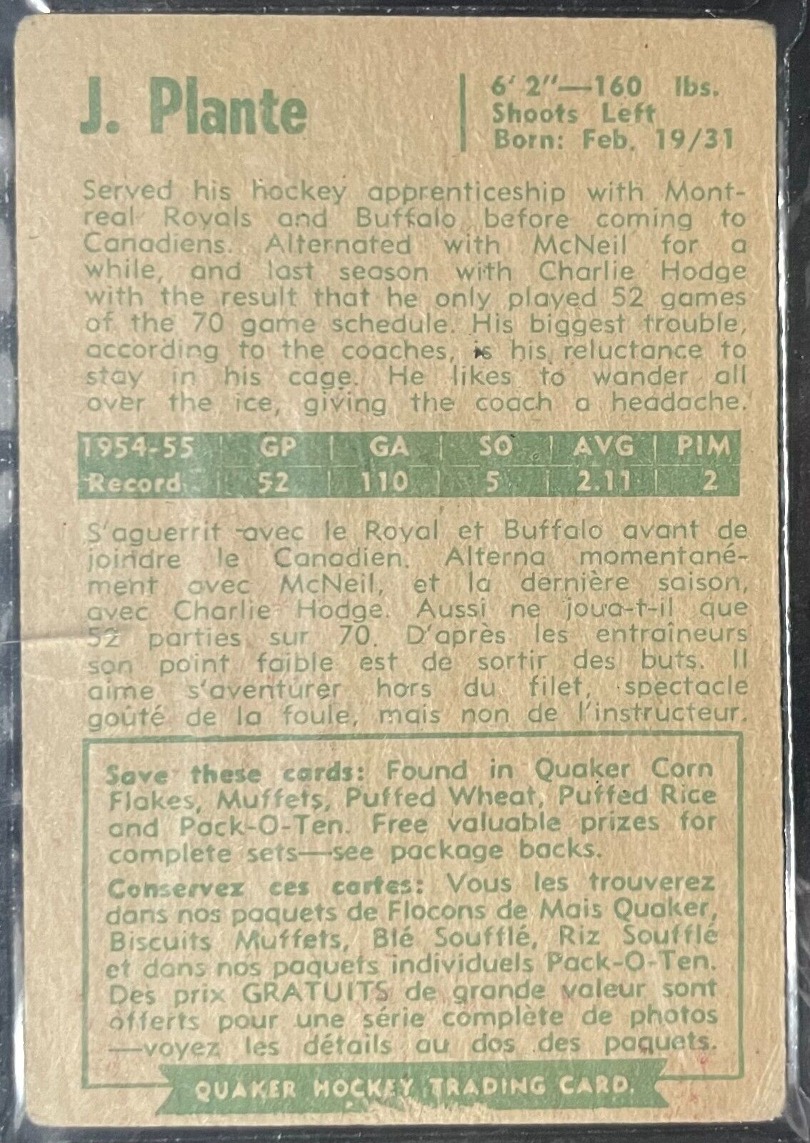 - 1955 Parkhurst #50 Jacques Plante NHL Hockey Rookie Card