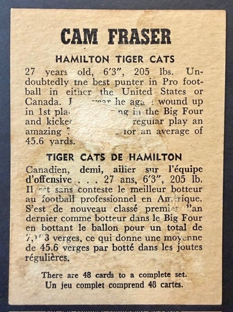 1956 #54 Cam Fraser Signed 1st CFL All Star Game Jersey, Card, Photo Shrine Game