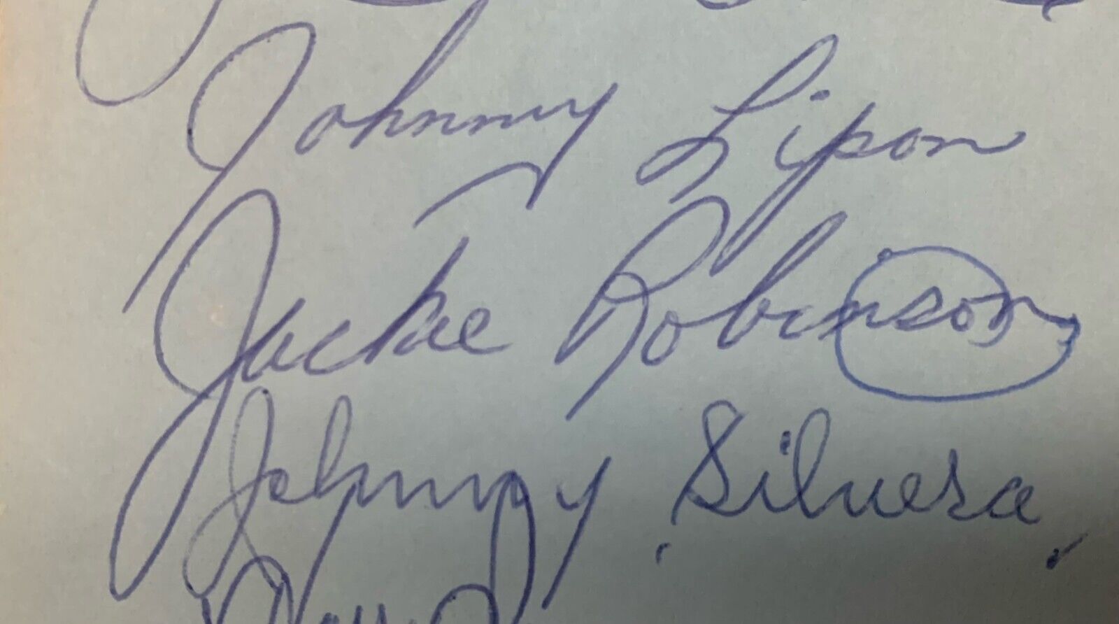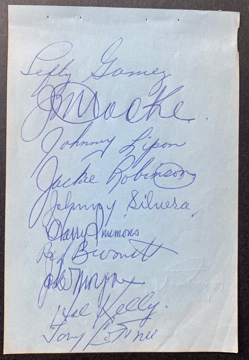 - Hall of Fame autographs include Jackie Robinson of the Brooklyn Dodgers and Lefty Gomez. Other signatures are Jack Kent Cooke, Johnny Lipon, Harry Simmons, Red Burnett, Hal Kelly, Merv McKenzie, Johnny Silvera and 2 others