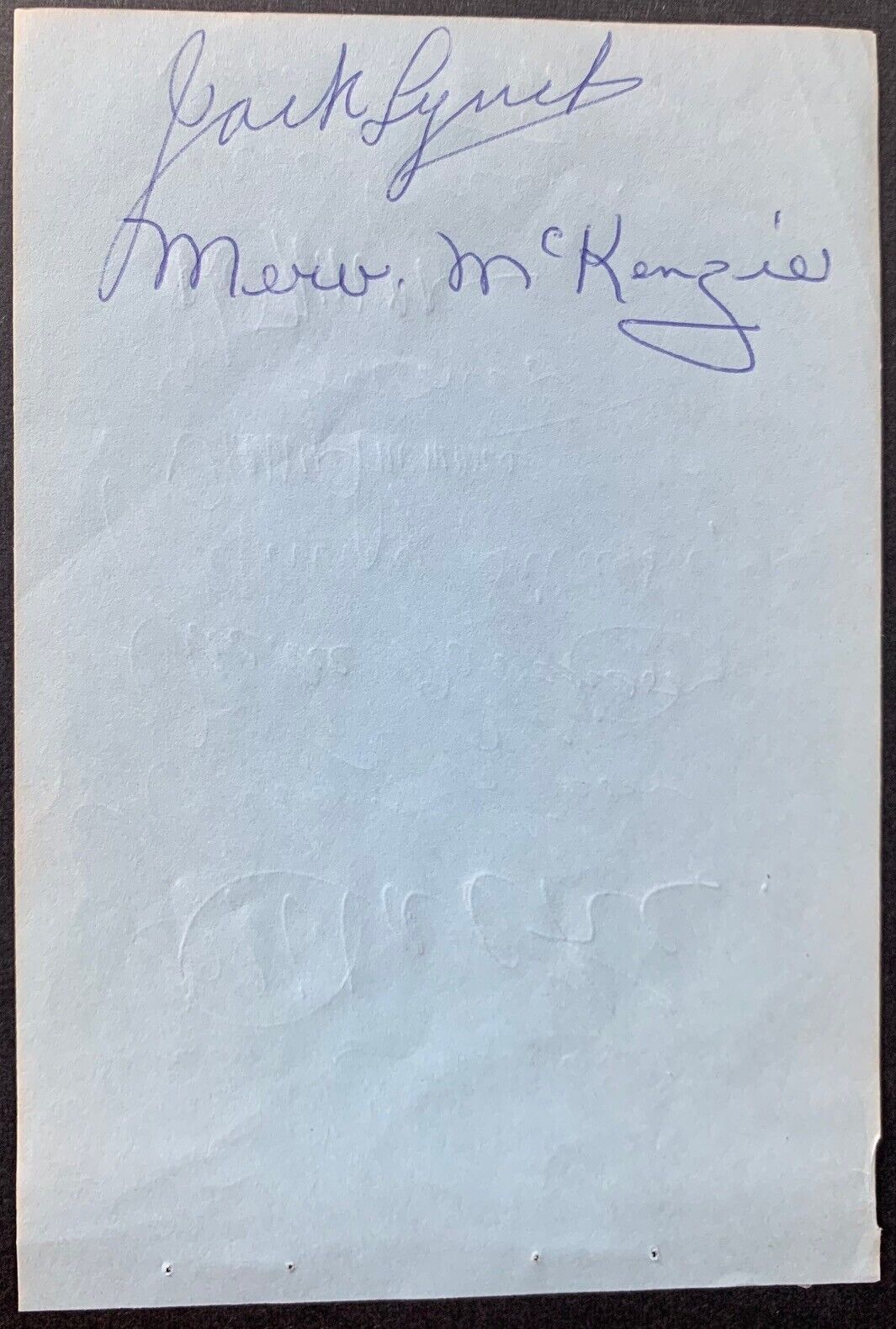 - Great condition; notable creasing and edgewear throughout. 4 pinholes at top of paper. Minor paper fading. Autographs present well with little to no notable bleeding, smudging or fading