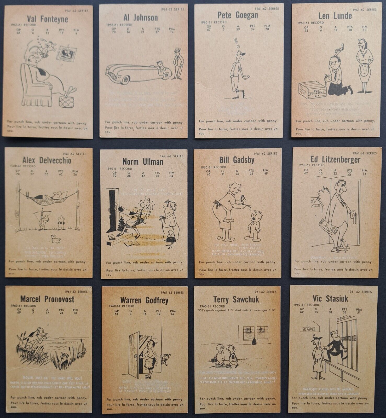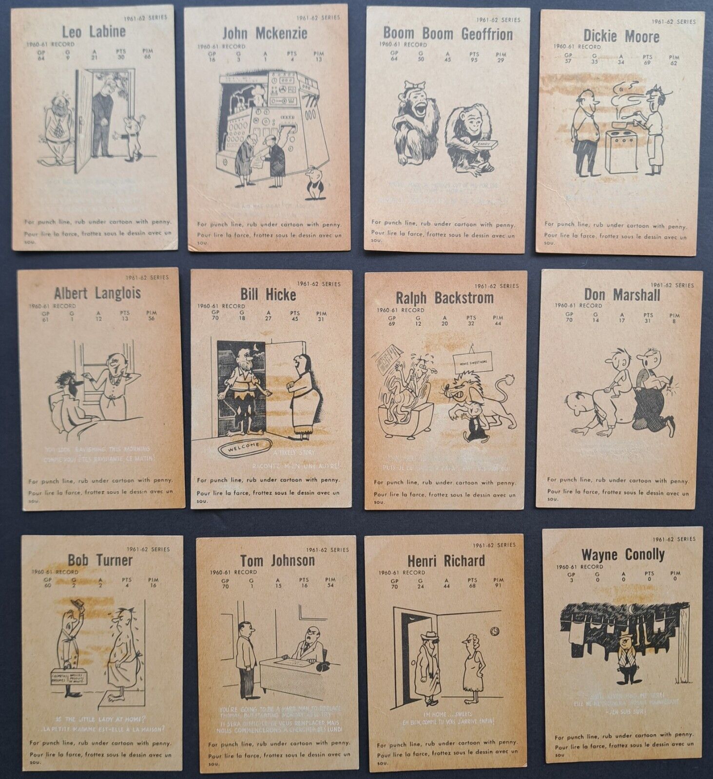 - 51 cards including Jean Beliveau, Jean Guy Talbot, Jacques Plante, Tim Horton, Dave Keon, Red Kelly, Gordie Howe, Henri Richard and more