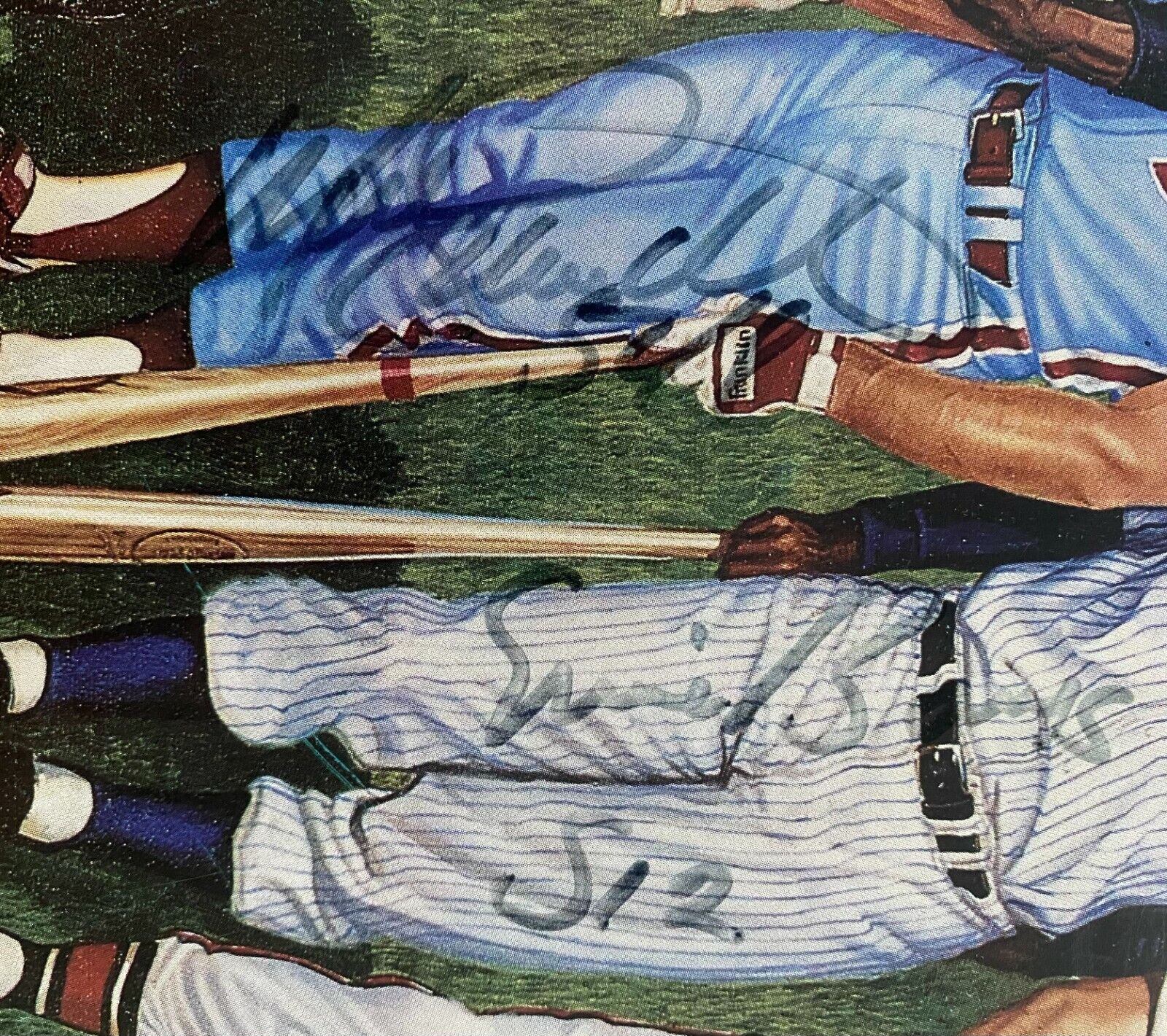 - 1988 painting print featuring and autographed by 11 members of baseball's 500 Home Run Club with letter of authenticity from James Spence Authentication