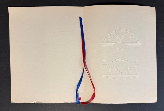 - Plaque on the base reads "Hall of Fame / Joe Morgan / Jim Palmer / August 5, 1990 / Induction"