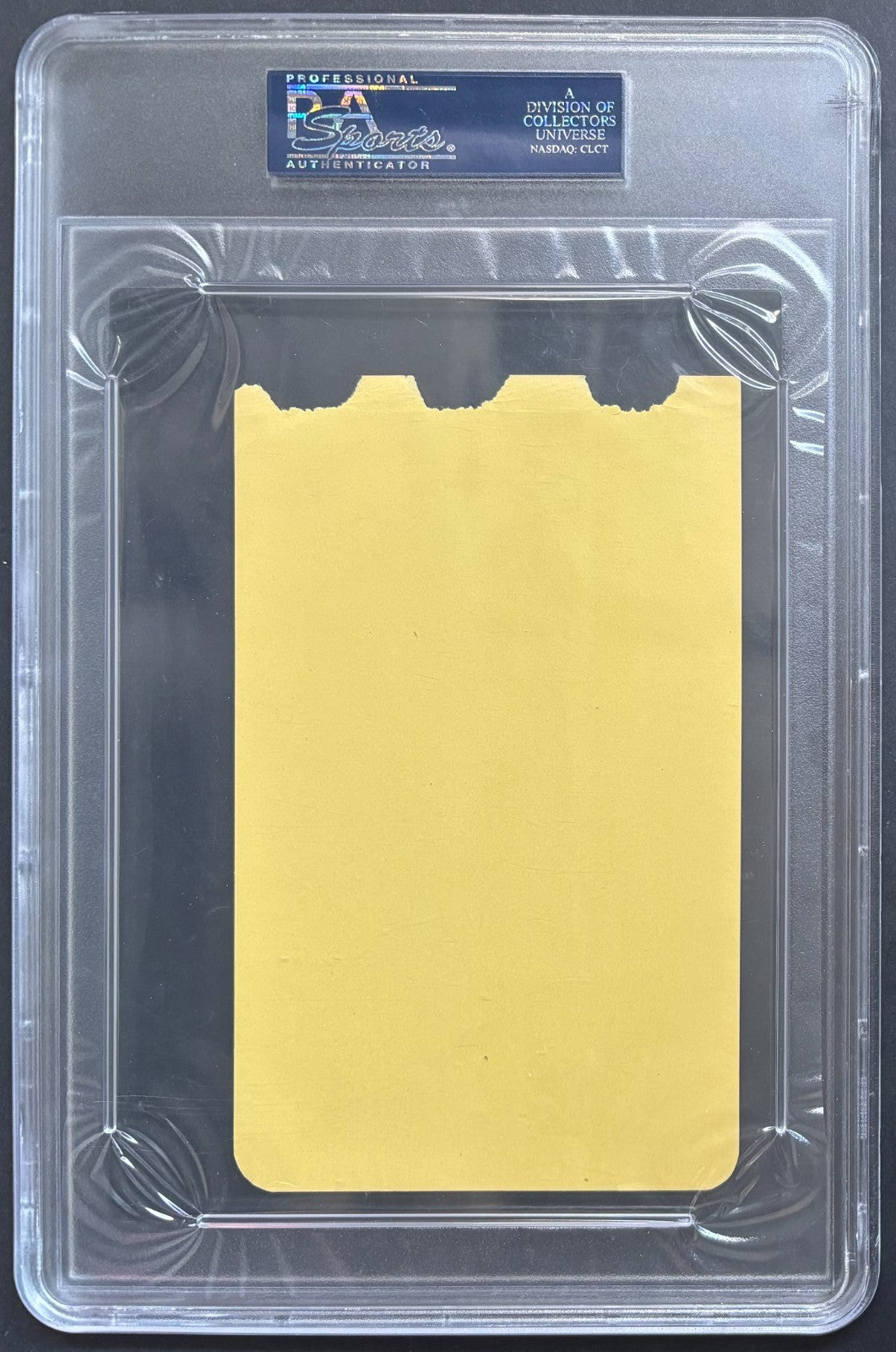 • Excellent condition; autograph shows no smudging, bleeding or fading and presents very well. Sheet shows minimal residual wear from being removed from scrapbook with little to no creasing or edgewear beyond the left edge from which it was bound to the autograph book. Slab shows no visible handling wear.