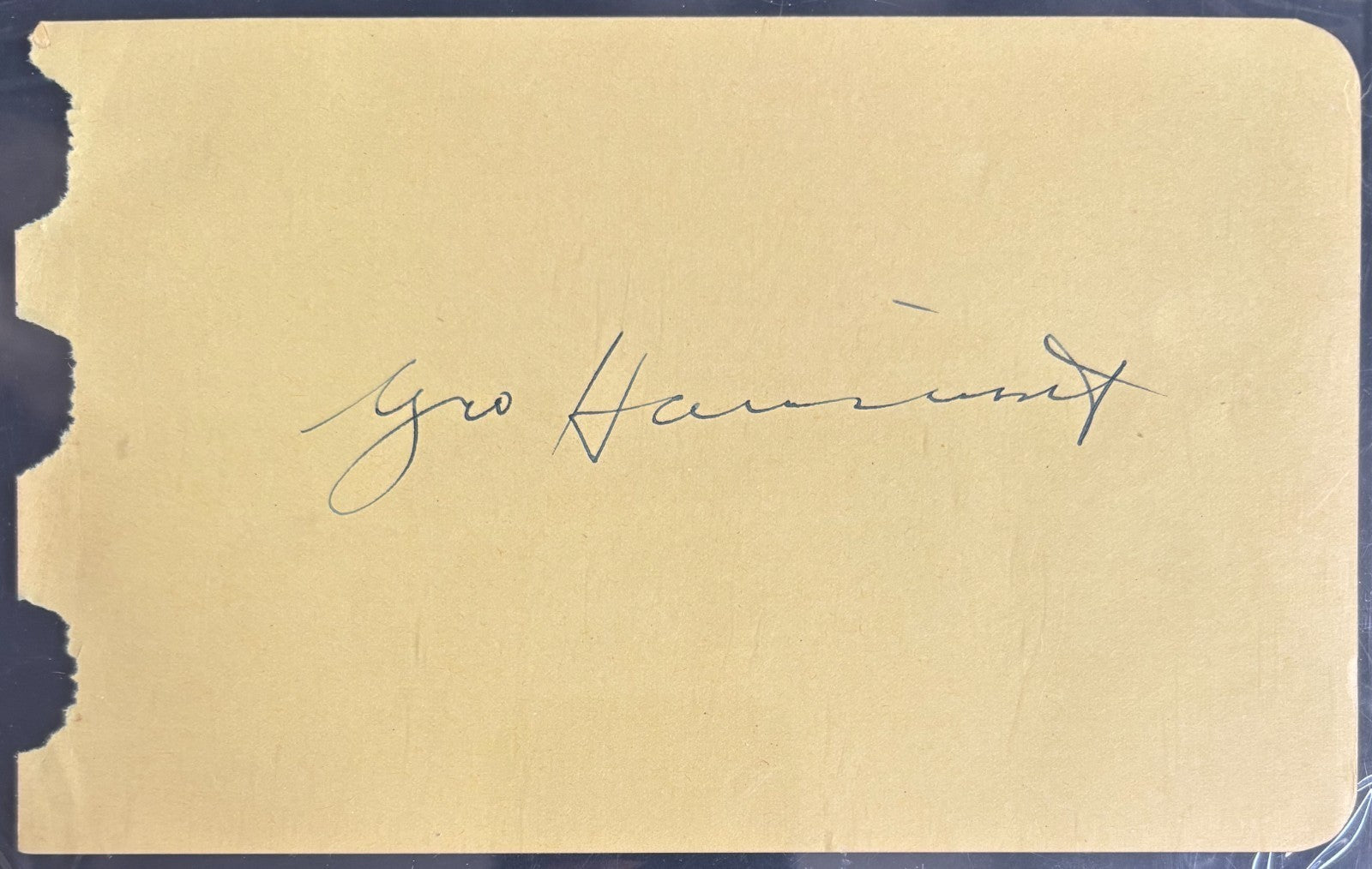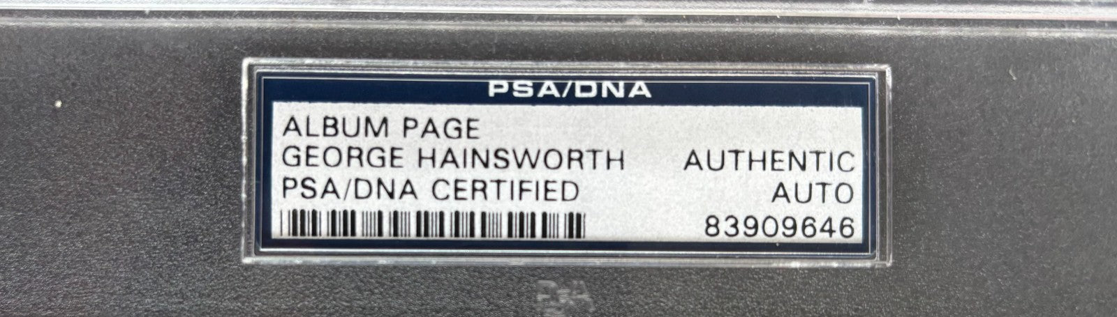 • Very rare and collectable George Hainsworth signature on a blank sheet from an autograph book, slabbed by PSA