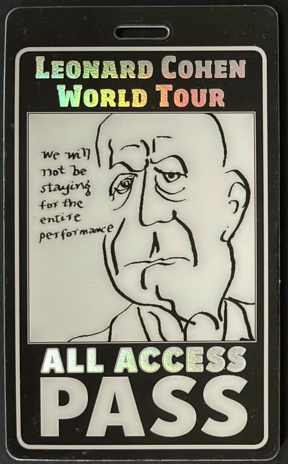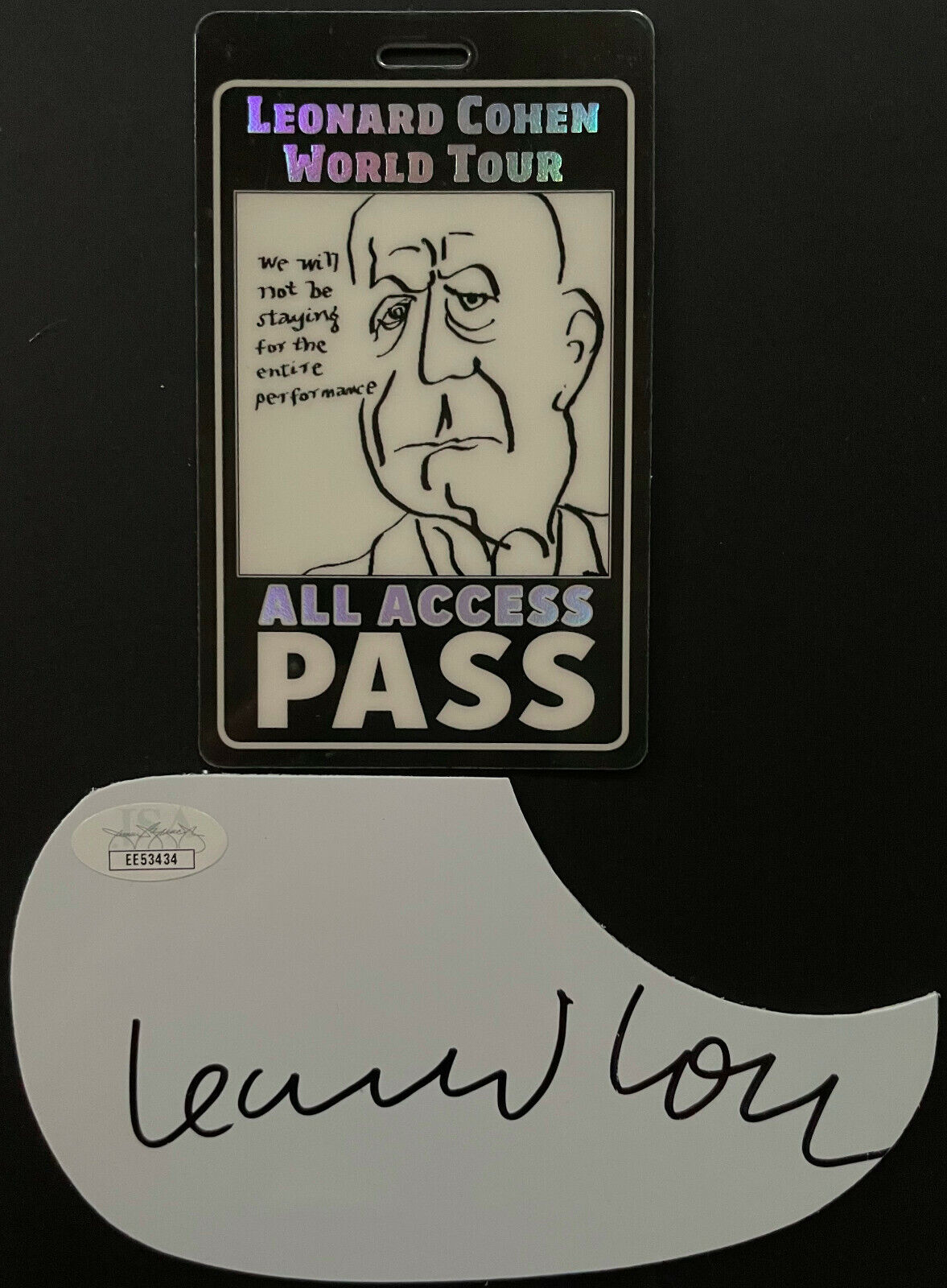 - Canadian singer / songwriter Leonard Cohen autographed acoustic guitar pickguard and also included is a world tour all access pass with the number "281"