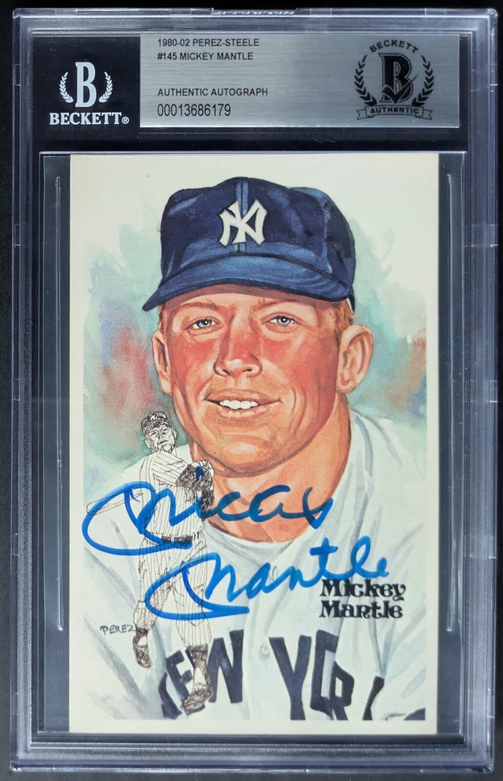 • New York Yankee Mickey Mantle Signed Autographed Perez Steele Postcard Beckett 8